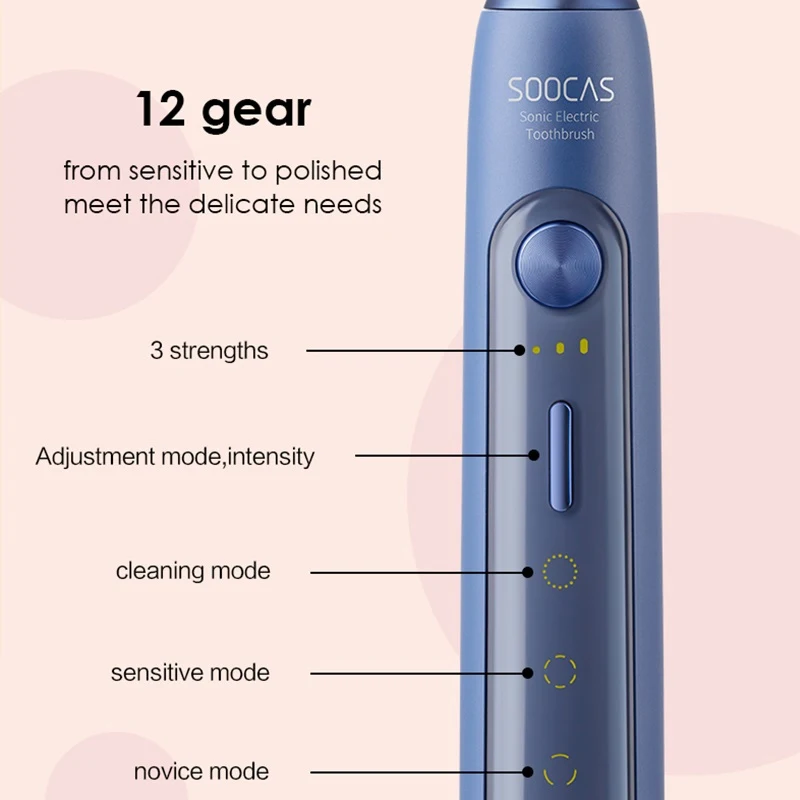 Зубная щетка электрическая Soocas X5, автоматическая ультразвуковая Водонепроницаемая беспроводная с 3 насадками для чистки полости рта, отбеливания