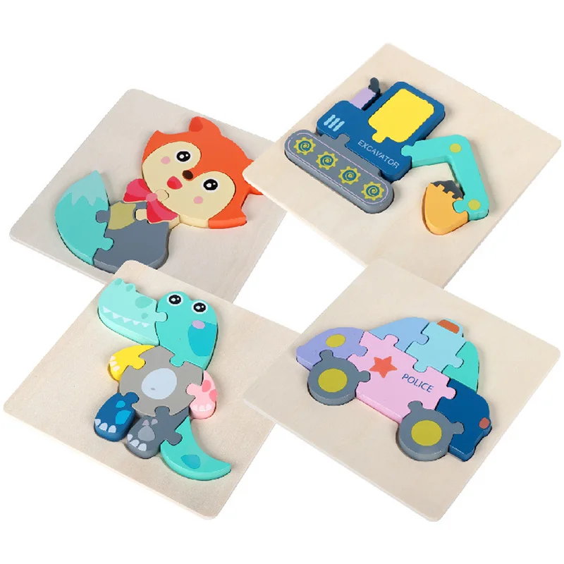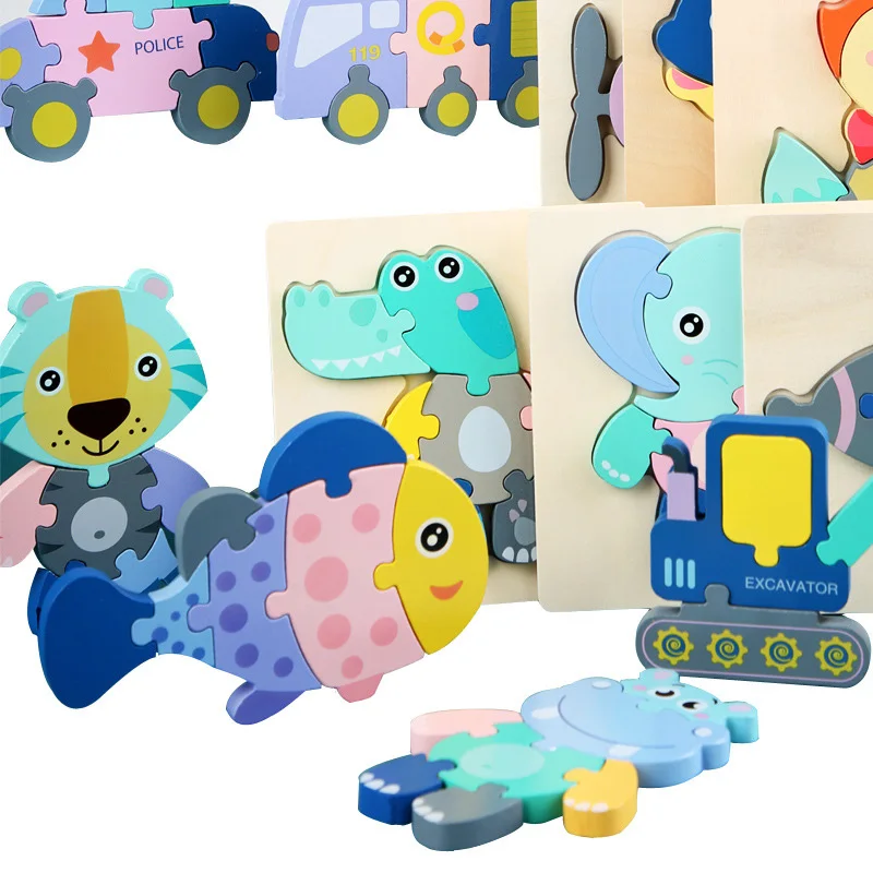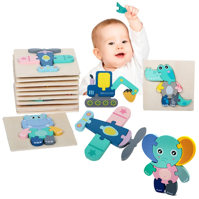 3D деревянные пазлы, детские игрушки Монтессори, развивающие Мультяшные животные для раннего развития, Пазлы высокого качества