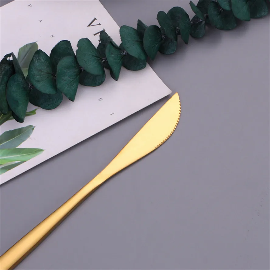 Набор столовых приборов из нержавеющей стали золотого цвета 1810, дорожные столовые приборы для ужина, набор столовых приборов с ножом, вилкой, ложкой, можно мыть в посудомоечной машине