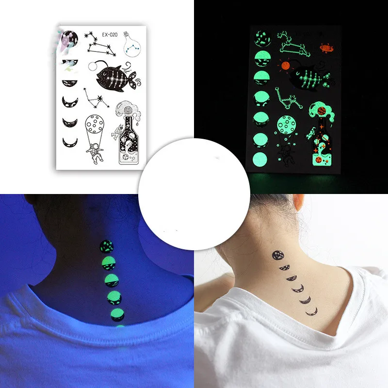 Светящаяся татуировка на Хэллоуин, 1 шт., татуировка призрака для детей, искусственная татуировка, ведьма, светящаяся в темноте, водонепроницаемые Временные татуировки-наклейки