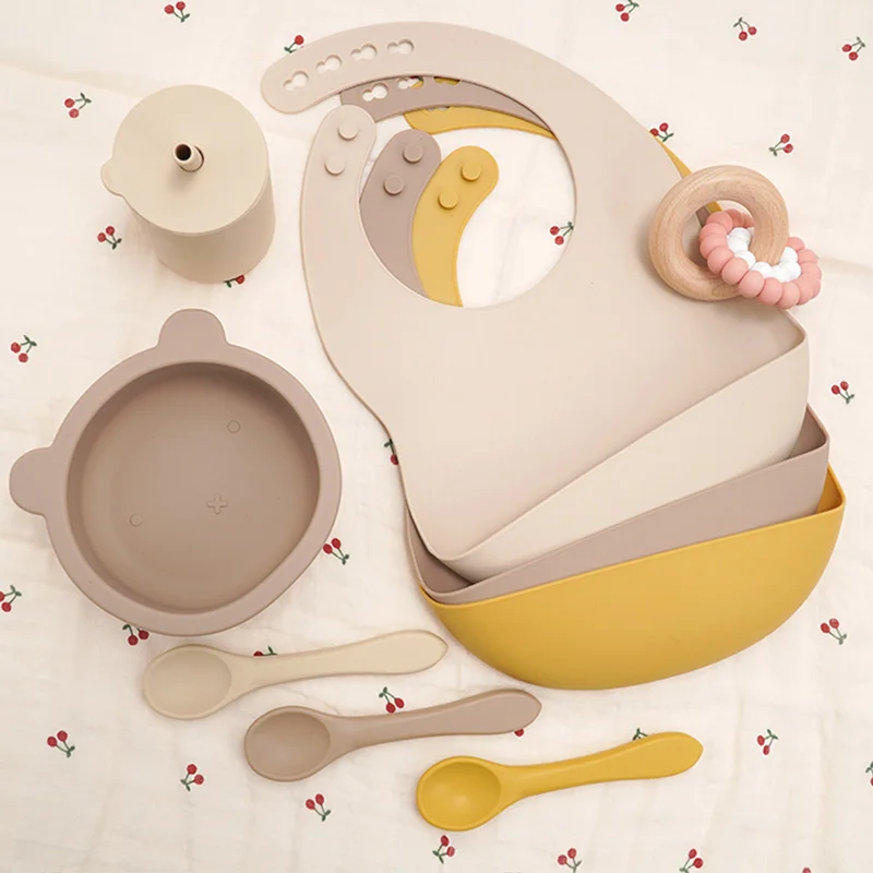 Оптовая продажа, новинка, Детская силиконовая тарелка, миска, чистый цвет, простая детская силиконовая посуда с детской соломенной чашкой