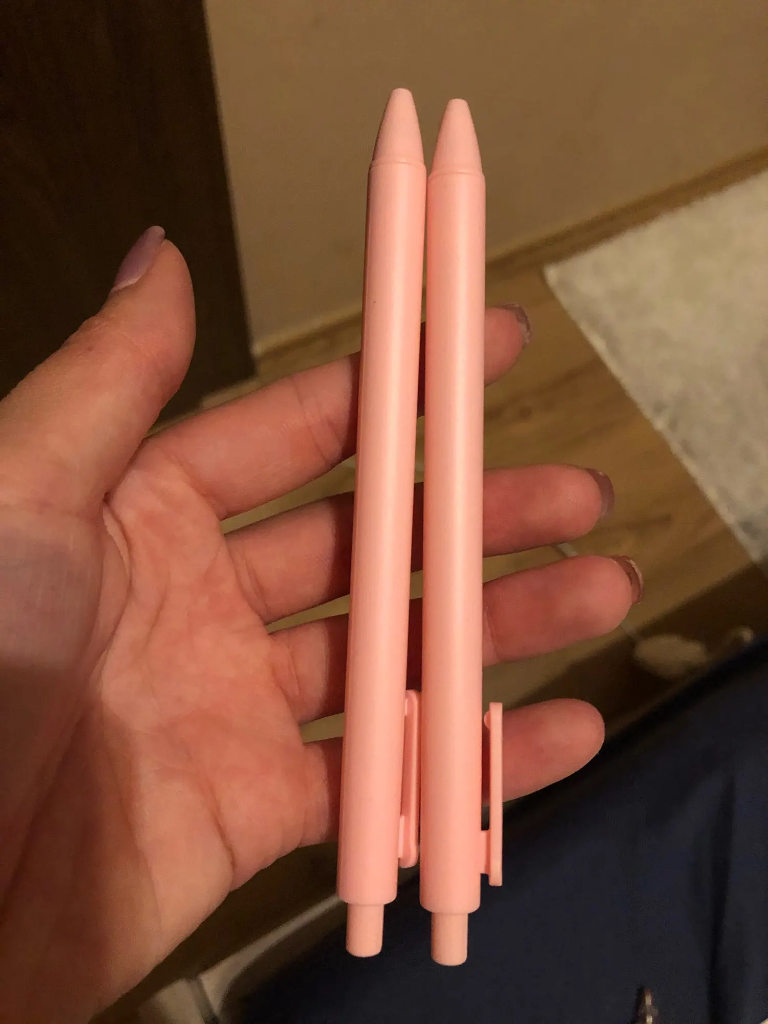 Симпатичные. Но у одной при попытке снять защиту со стержня, выпал наконечник, и начал вытекать гель. Хорошо, что удалось вставить назад без потерь. Пишут нормально.