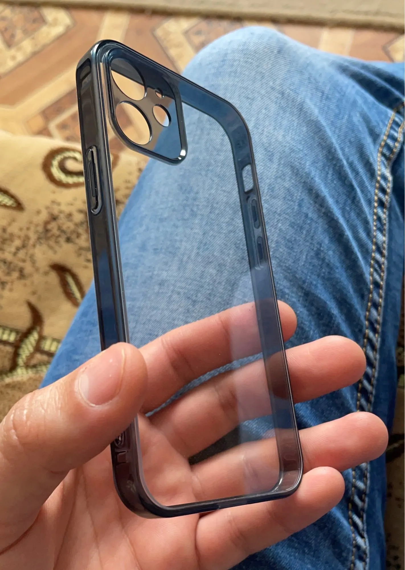 Очень классный чехол, под синий Айфон самое то, задняя часть это стекло очень хорошее, боковая часть сделано из среднее жесткого силикона, молодец кто сделал такой чехол, если продавали у нас России цена бы была 2 или 3 тыс. покупайте не пожалеете!!!