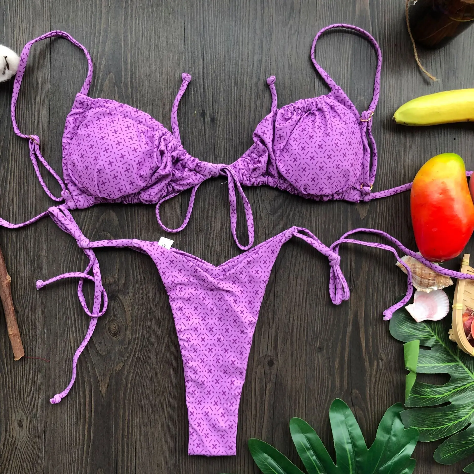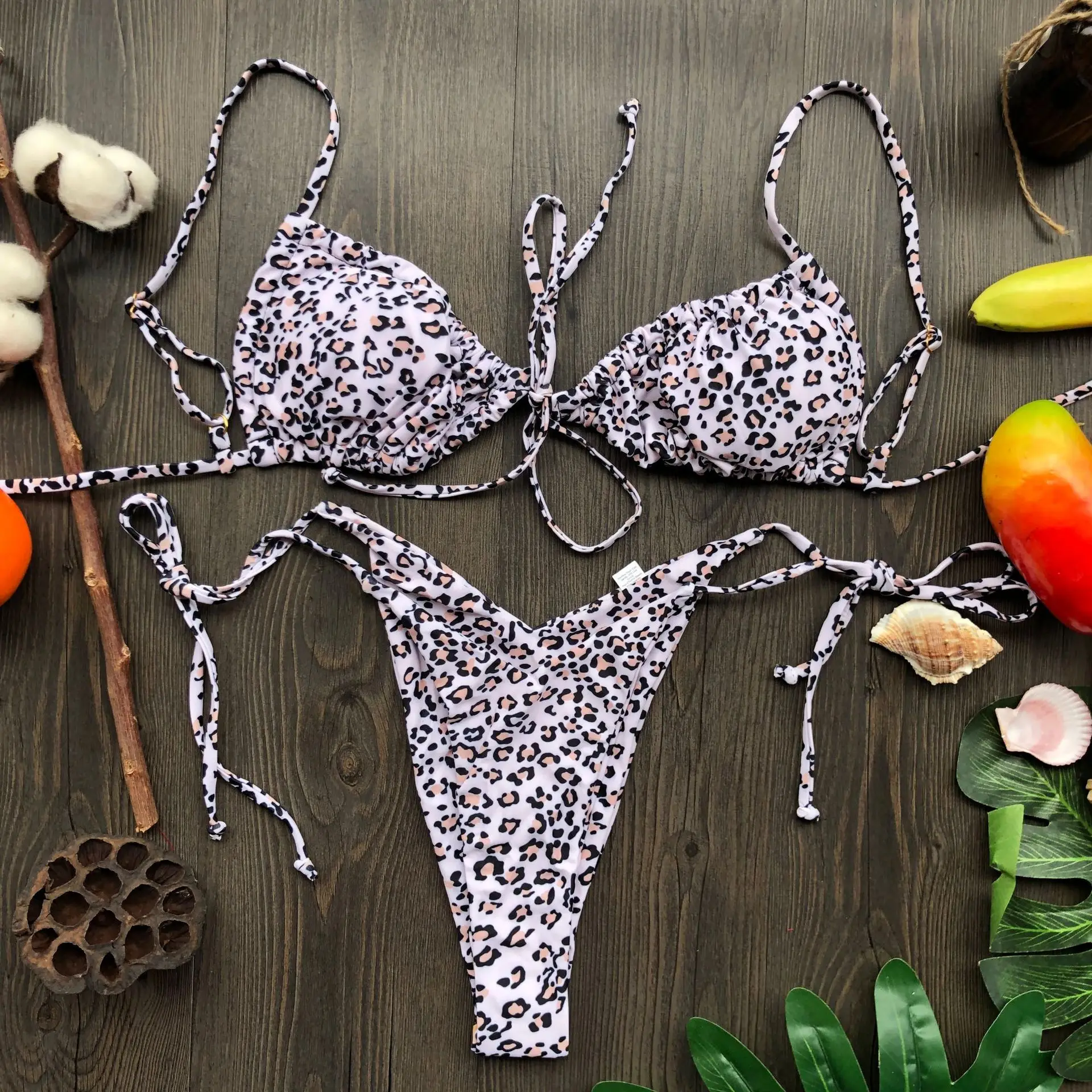 Купальник-бикини женский однотонный, пикантный бандажный комплект бикини, халтер, Бразильский купальный костюм, купальная одежда, 2021