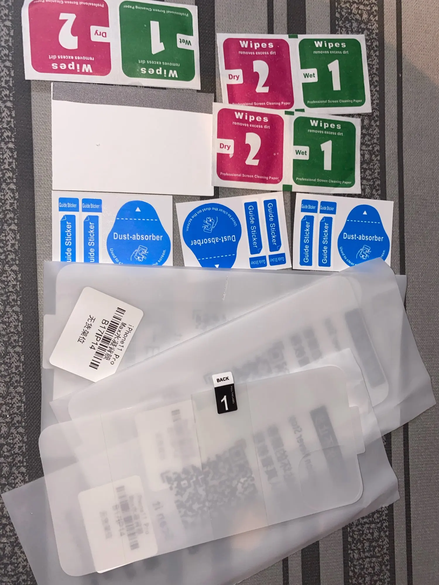 В наборе 3 штуки. Сам по себе товар не плохой. Хорошая силликоновая подложечка. iPhone 8 очень красивый и приятный по ощущениям, но задняя панель настолько скользкая, что так и норовит скатится вниз даже с почти горизонтальной поверхности, а эта пленочка придает хорошее сцепление с поверхностью. Процесс поклейки продуман неплохо, но таки идеально в домашних условиях вряд ли получится приклеить. Очень нежная и цепкая, так что отклеивать-приклеивать не вариант. Скорее всего будут чуть заметные позырики и полоски. Но резюмируя, в общем, все ок. Я рекомендую. Кстати, запах очень интересный и выраженный, камфорный (скорее всего это в результате самого способа производства пластика, типа так и нужно скорее всего.