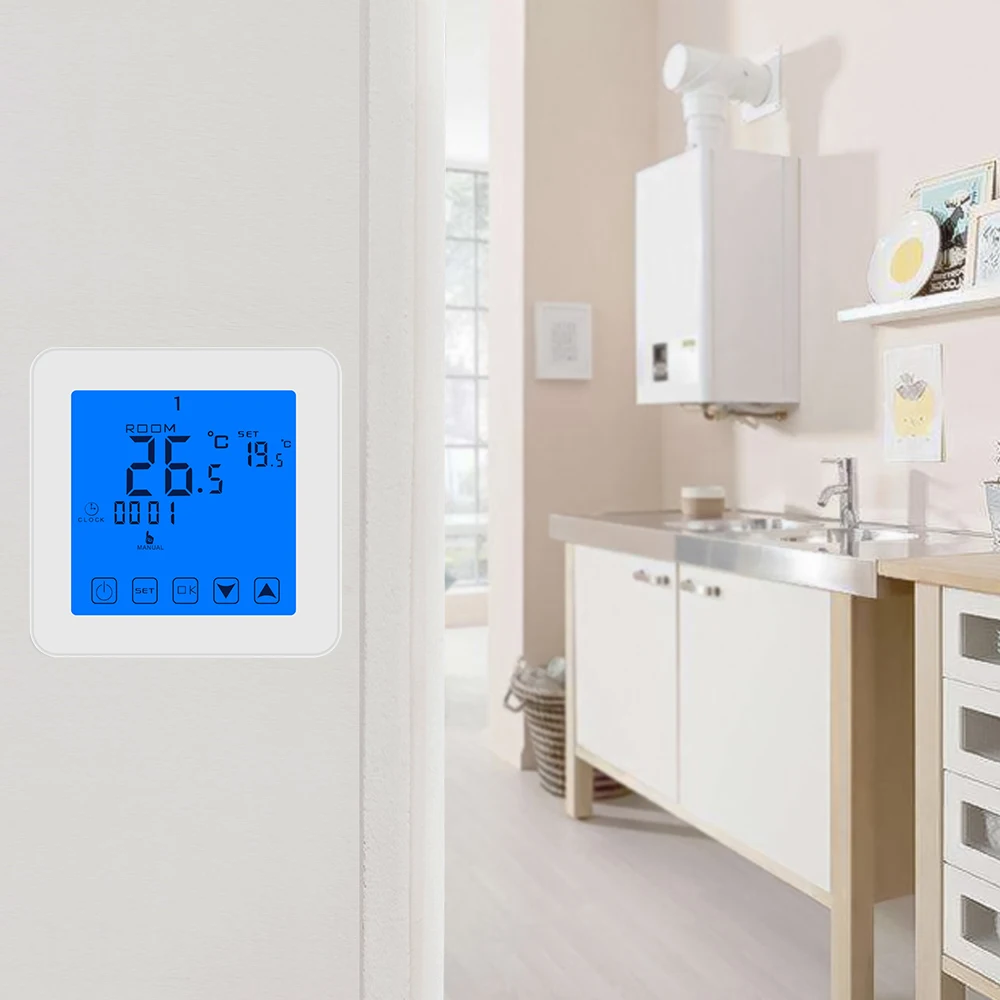 Газовый котел отопления Температура контроллер программируемый термостат настенный бойлер терморегулятор синий Подсветка сенсорная кнопка