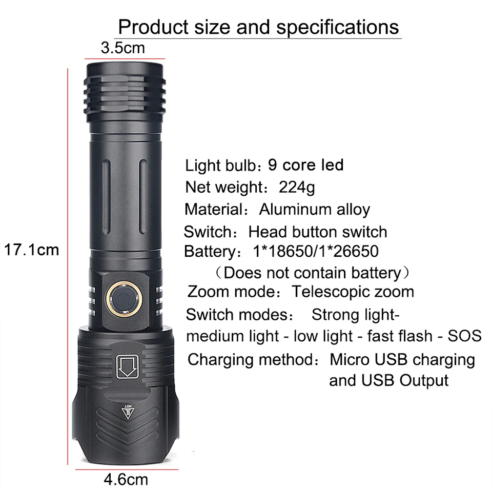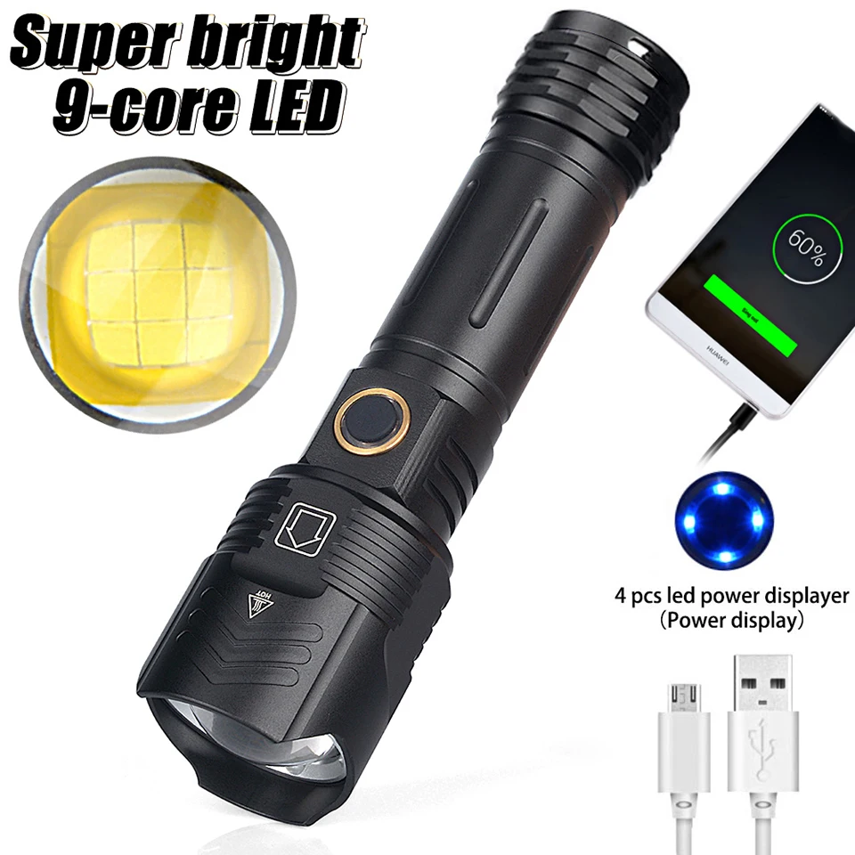Высококачественный светодиодный фонарик XHP100 9-ядерный USB Перезаряжаемый внешний аккумулятор 18650 26650 аккумулятор фонарик масштабируемый алюминиевый фонарь