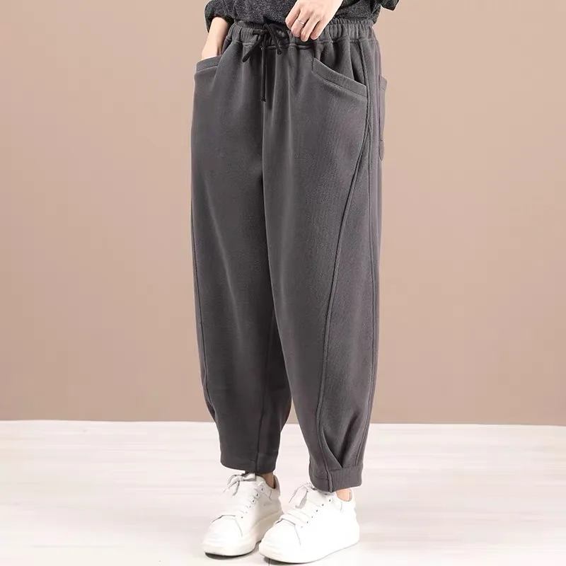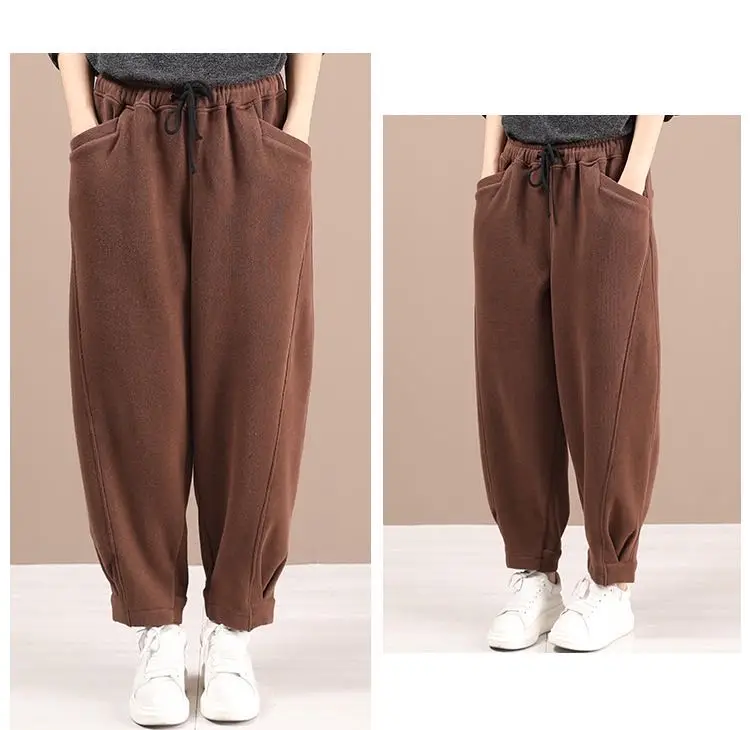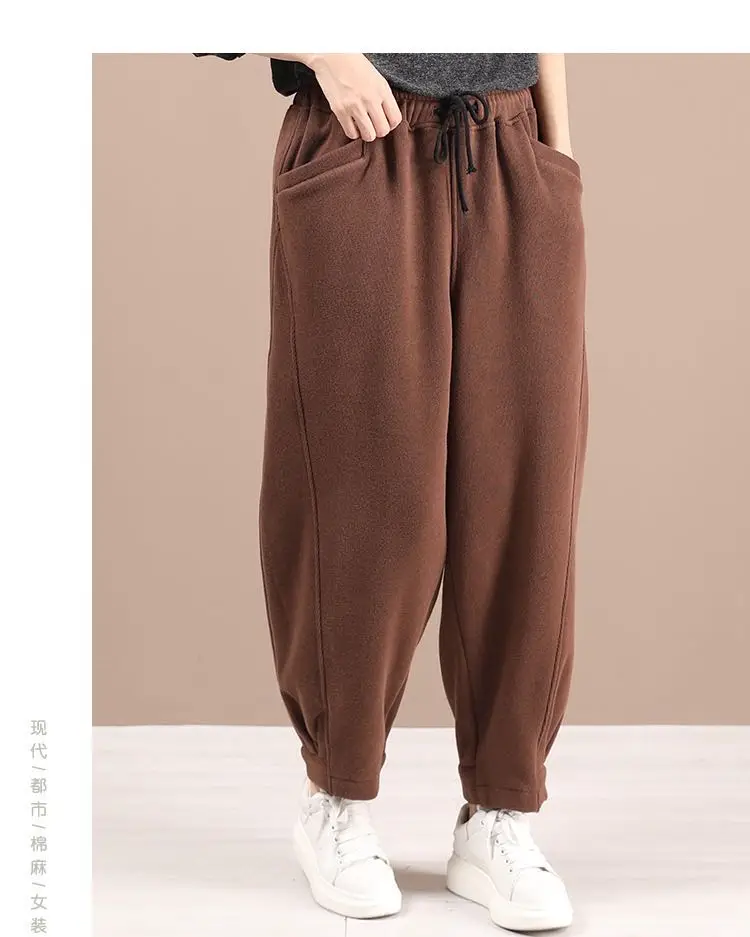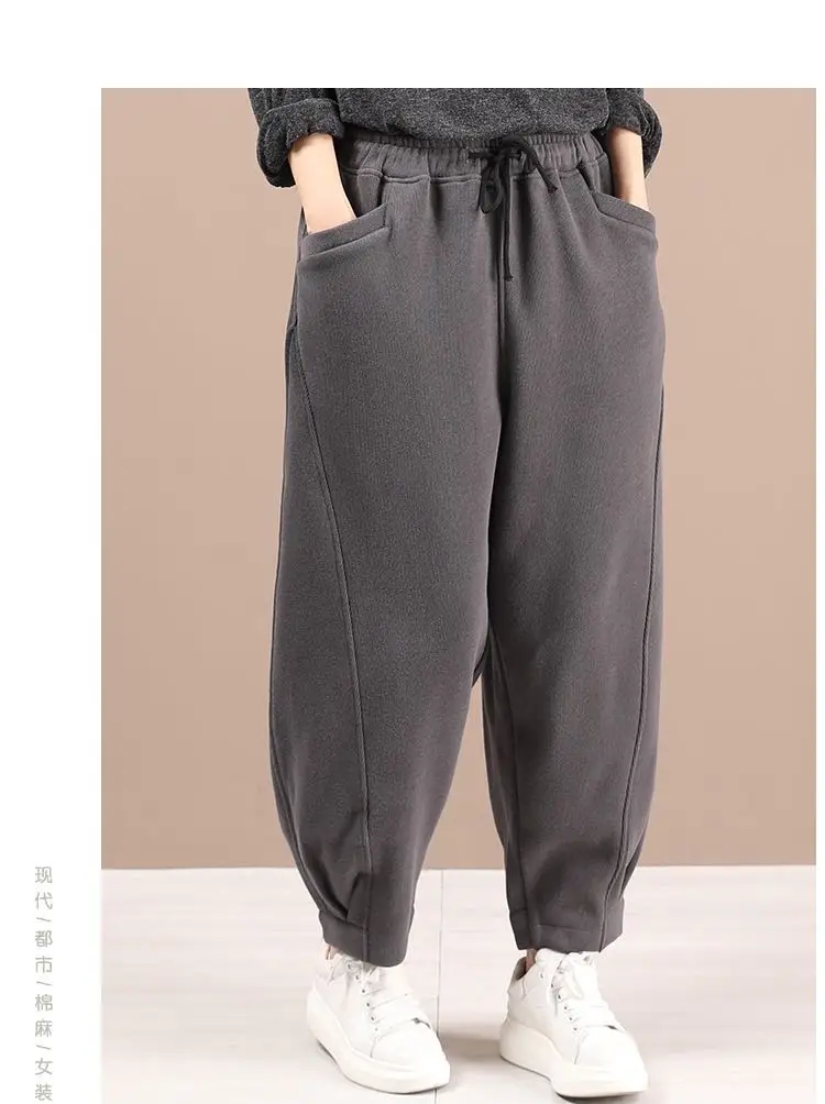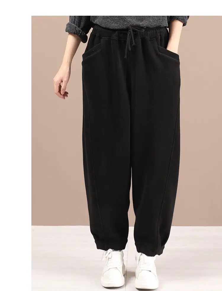 2020 осень-зима Новые искусства Стиль женщин свободного покроя с эластичной резинкой на талии брюки для девочек с двойным карманом, хлопковые теплые штаны-шаровары брюки размера плюс S107