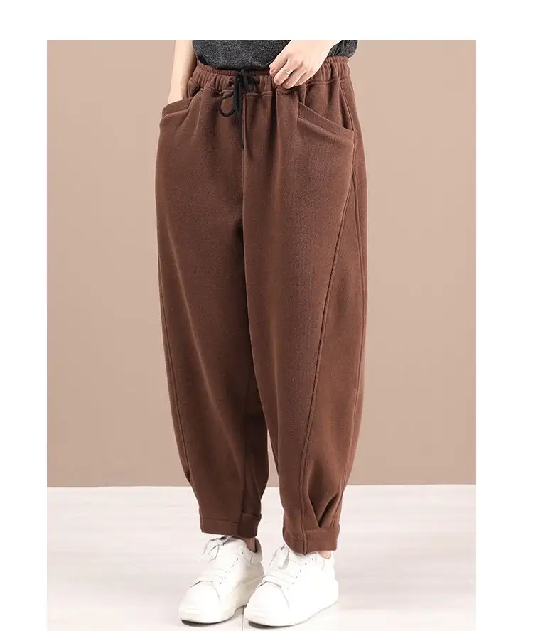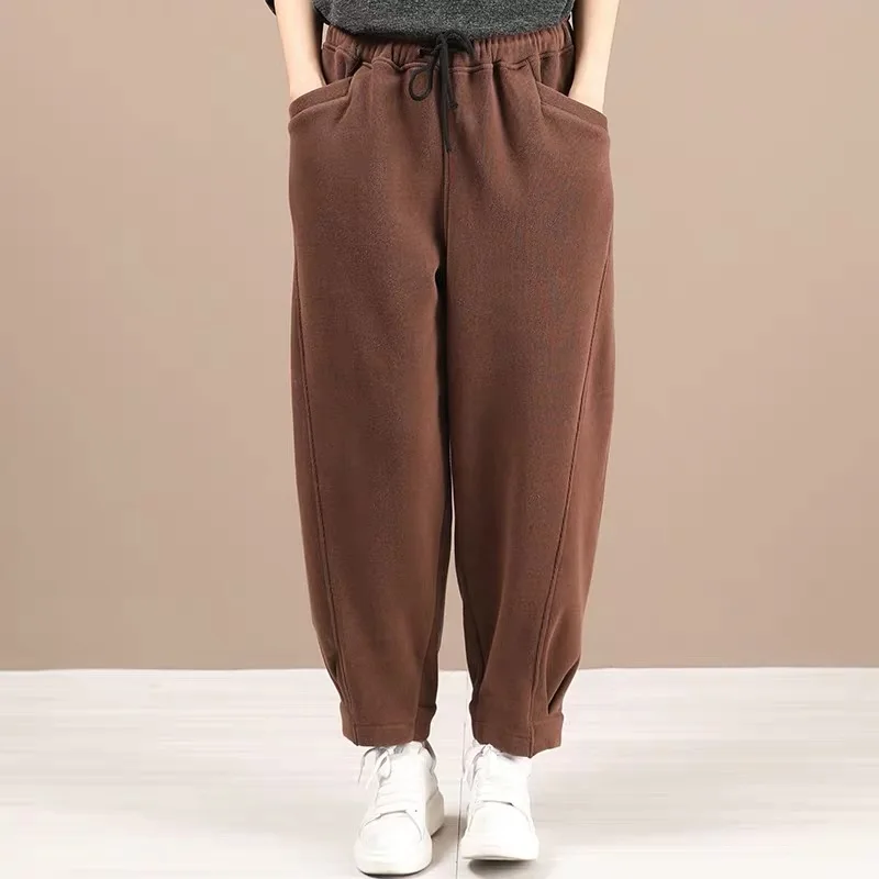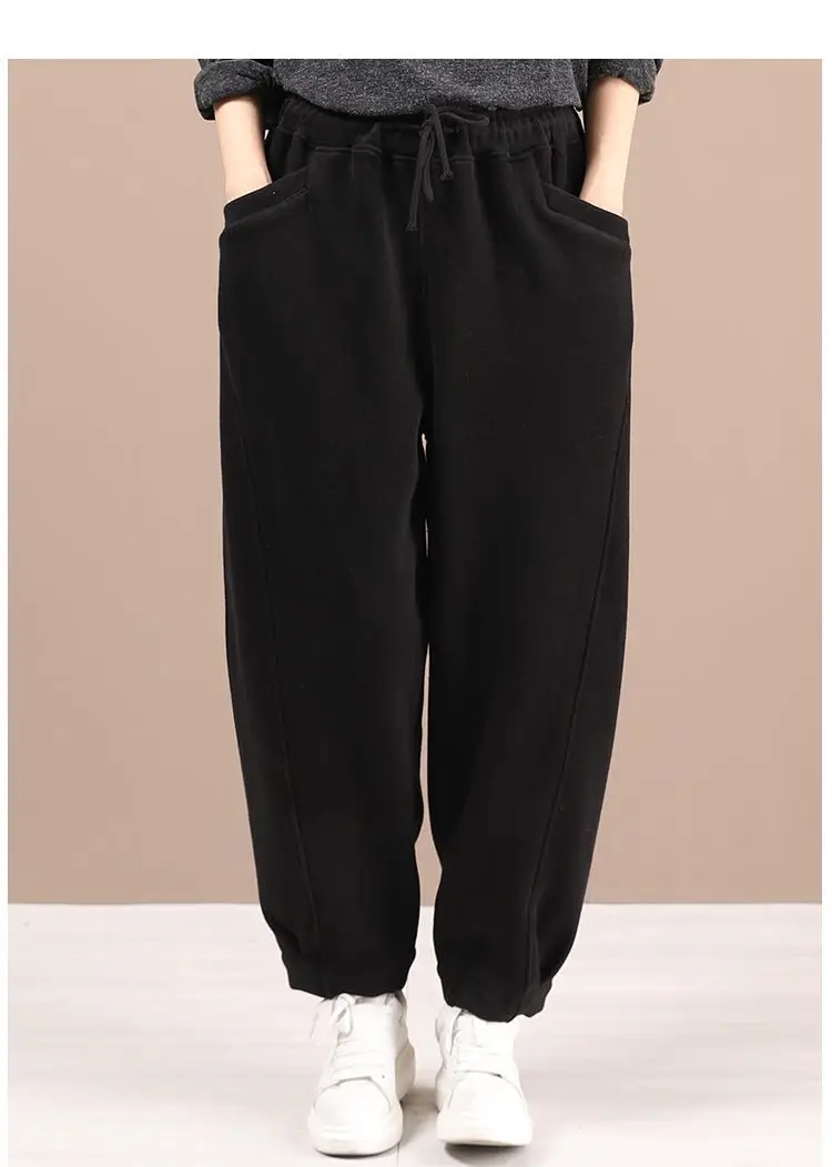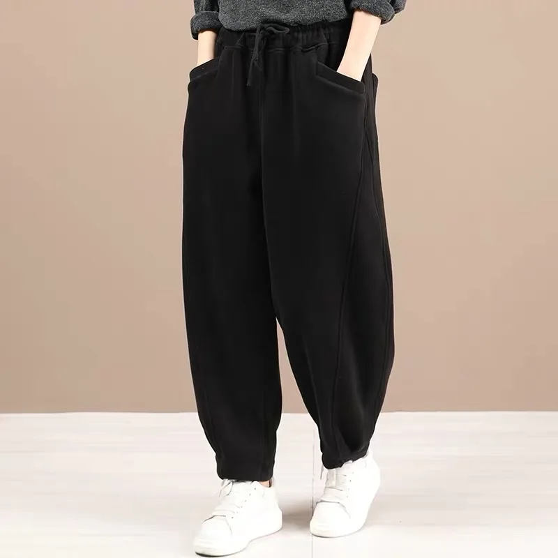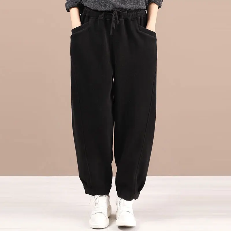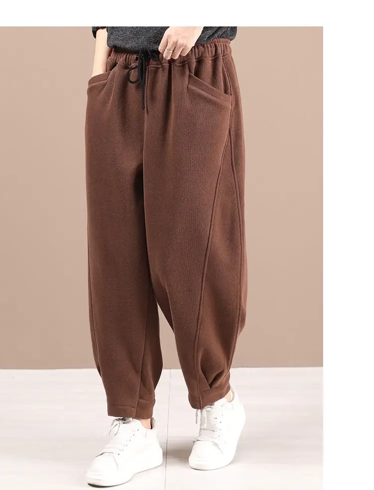 2020 осень-зима Новые искусства Стиль женщин свободного покроя с эластичной резинкой на талии брюки для девочек с двойным карманом, хлопковые теплые штаны-шаровары брюки размера плюс S107