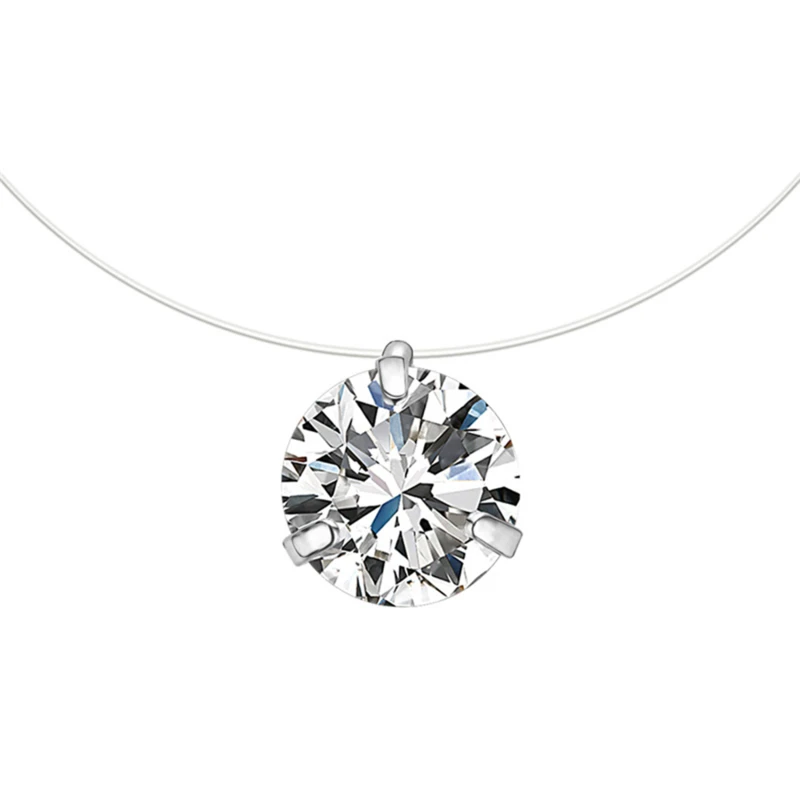 Женский чокер с невидимой леской, ожерелье с подвеской из кристалла, циркониевая цепочка до ключиц