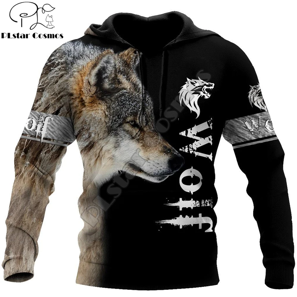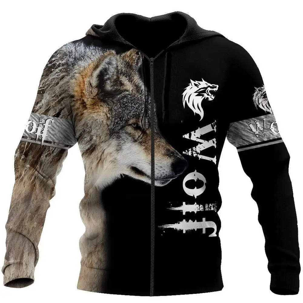 Толстовка мужская с капюшоном и 3D-принтом волка, DW0230