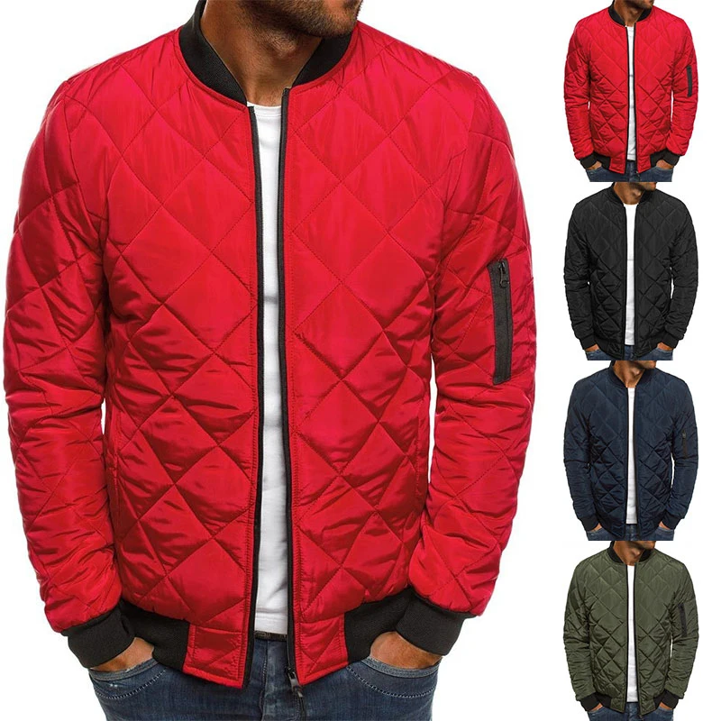 Мужской стеганый пуховик на молнии, Повседневная теплая куртка-бомбер на зиму