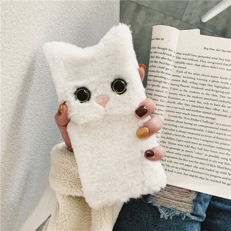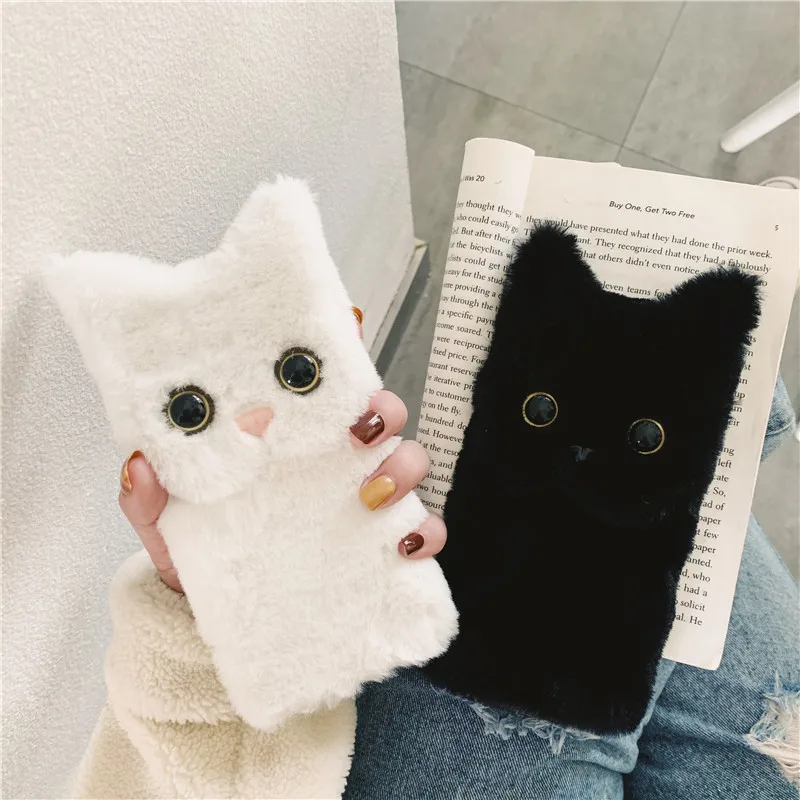 Зимний теплый плюшевый милый чехол для телефона с кошкой для IPhone...
