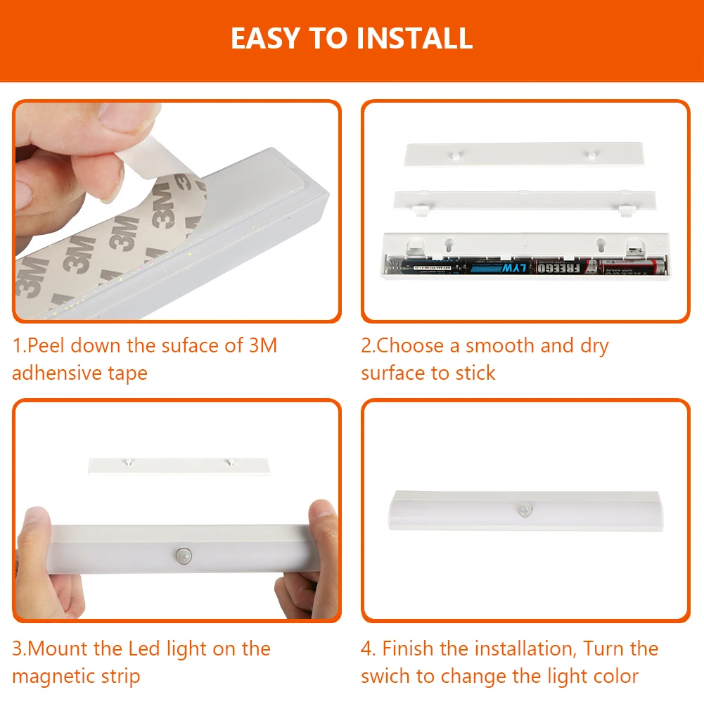 Светодиодный под кабинет БатареяUSB Ночной светильник движения Сенсор сарай гараж шкаф для одежды шкаф для ламп светильник для шкафа Лестницы Кухня