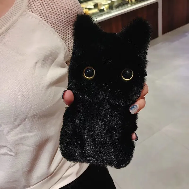 Зимний теплый плюшевый милый чехол для телефона с кошкой для IPhone...