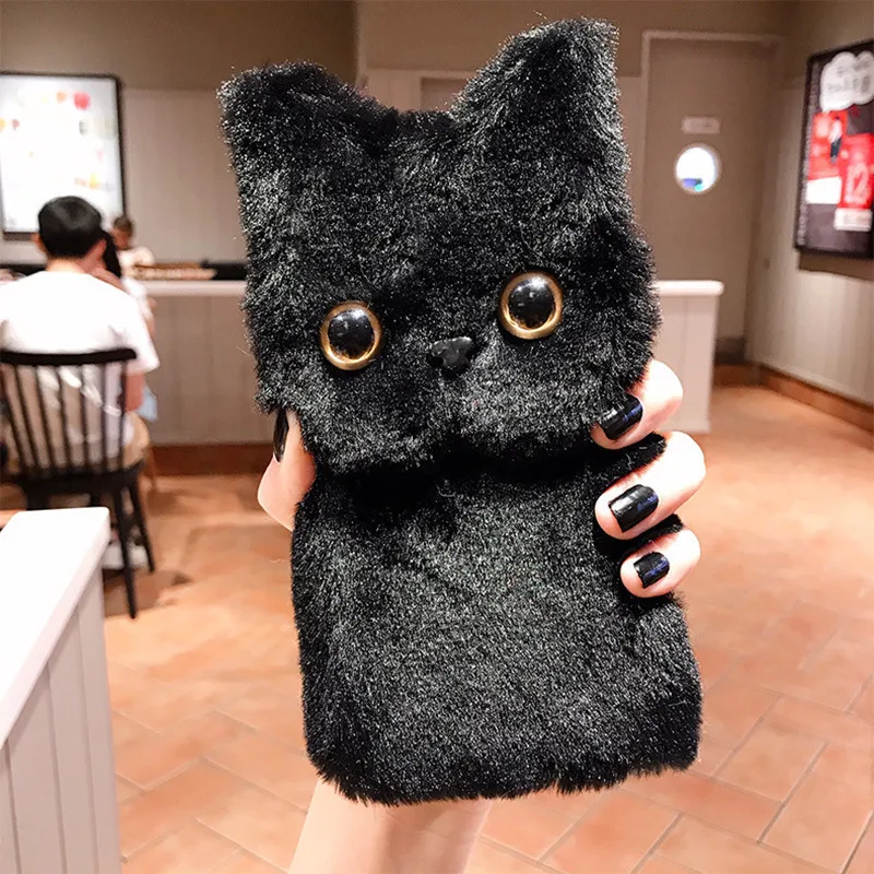 Пушистый силиконовый чехол для телефона, милый плюшевый чехол с кош...