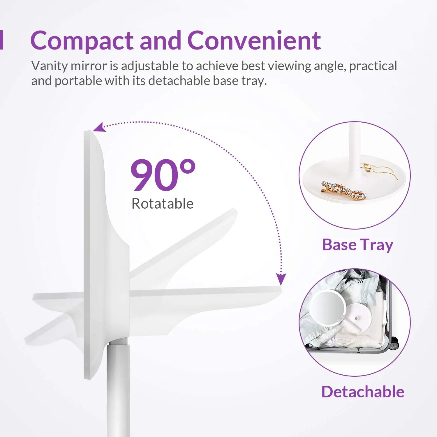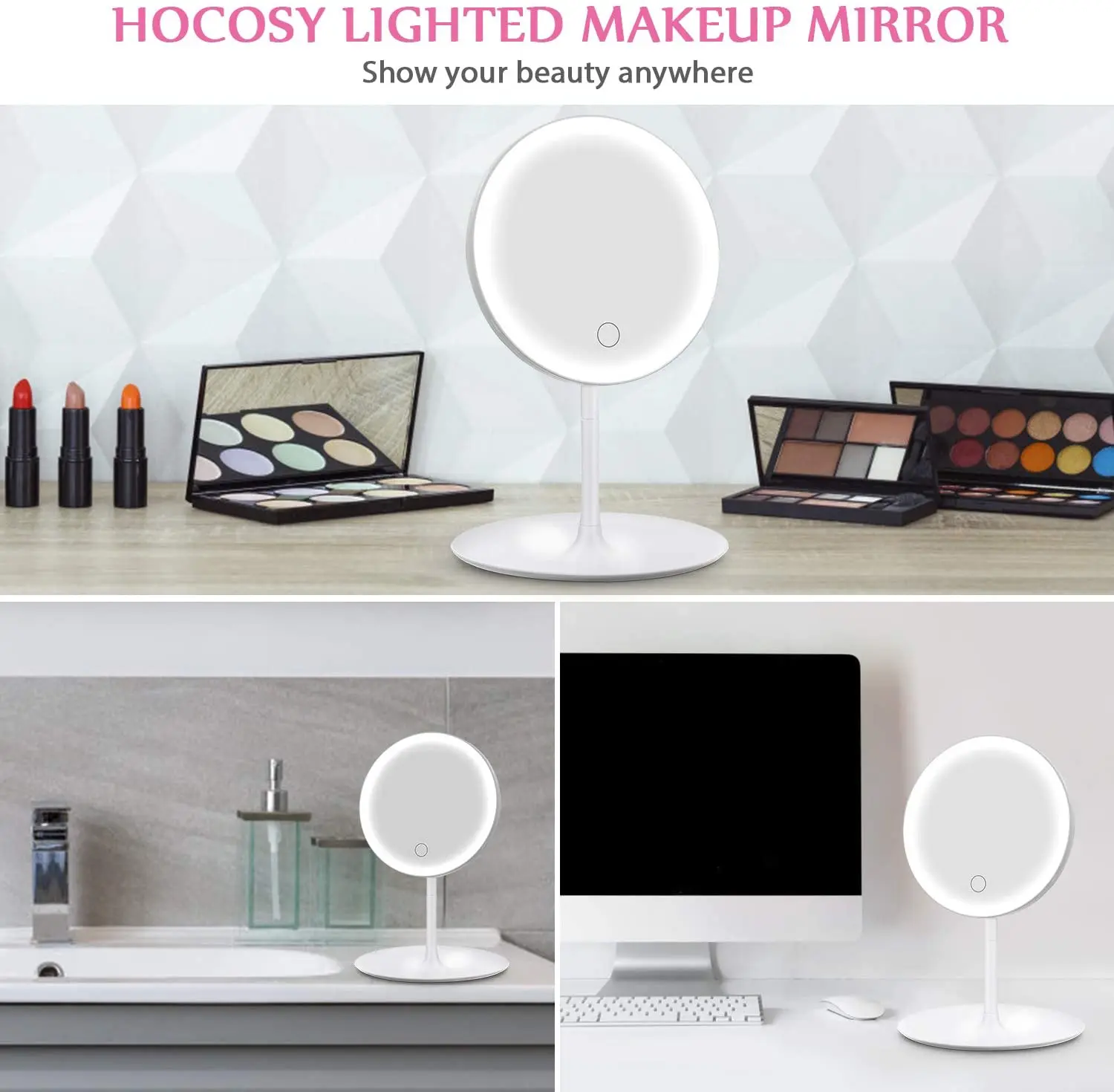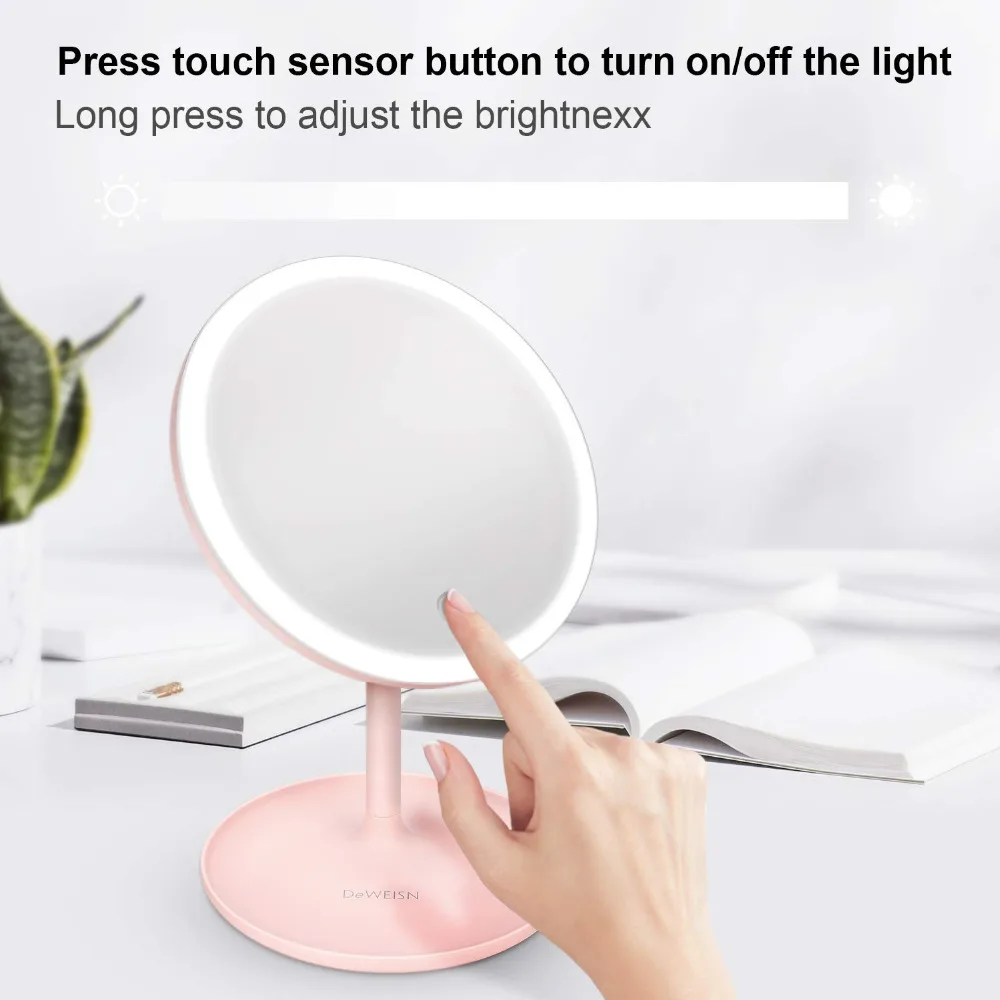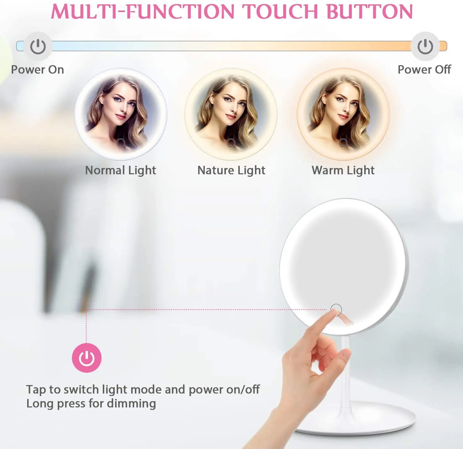 Светильник ed зеркало для нанесения макияжа, Перезаряжаемые зеркало, светильник зеркала заднего вида для путешествий, Портативный настольное косметическое зеркало, 3 цвета с регулируемой яркостью