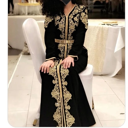 Высококачественное велюровое марокканское платье с длинными рукавами и золотыми аппликациями, ТРАПЕЦИЕВИДНОЕ мусульманское арабское платье для выпускного вечера, мусульманское платье, Кафтан Вечернее платье