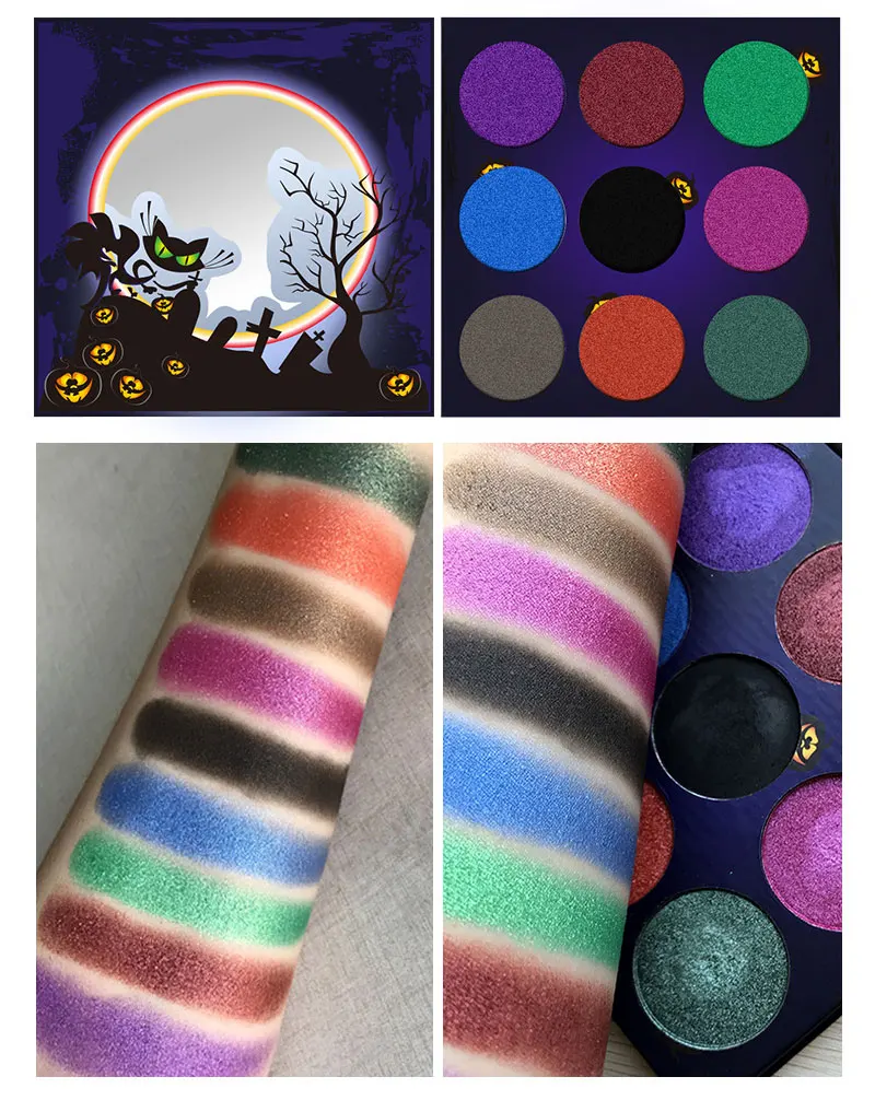9 Цвета тени для век, палитра, для Хэллоуина, тени для век, палитра матовое стекло с перламутровым эффектом мерцания блестящие тени для век, длительного действия, для макияжа, TSLM1