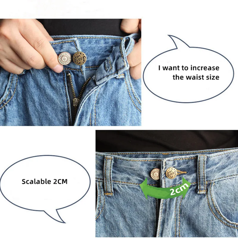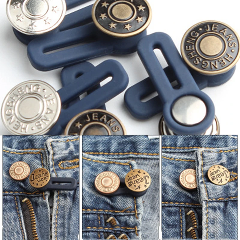 5 шт.набор, бесплатная швейные пуговицы Регулируемый разборки выдвижной джинсы с эластичной резинкой на пуговицах Металл Расширенный пряжки брючный пояс с ножными креплениями