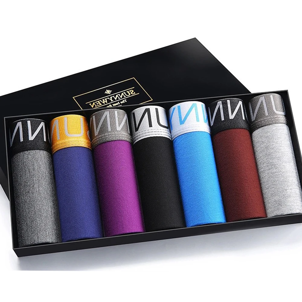 Трусы-боксеры мужские эластичные 7 шт., модные хлопковые шорты, однотонные дышащие, нижнее белье