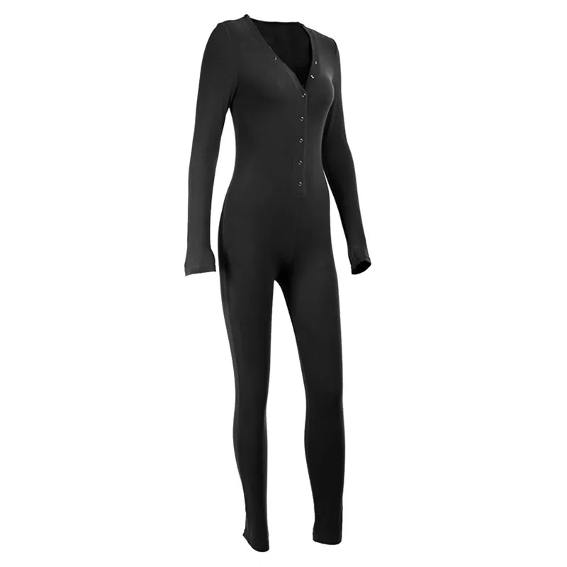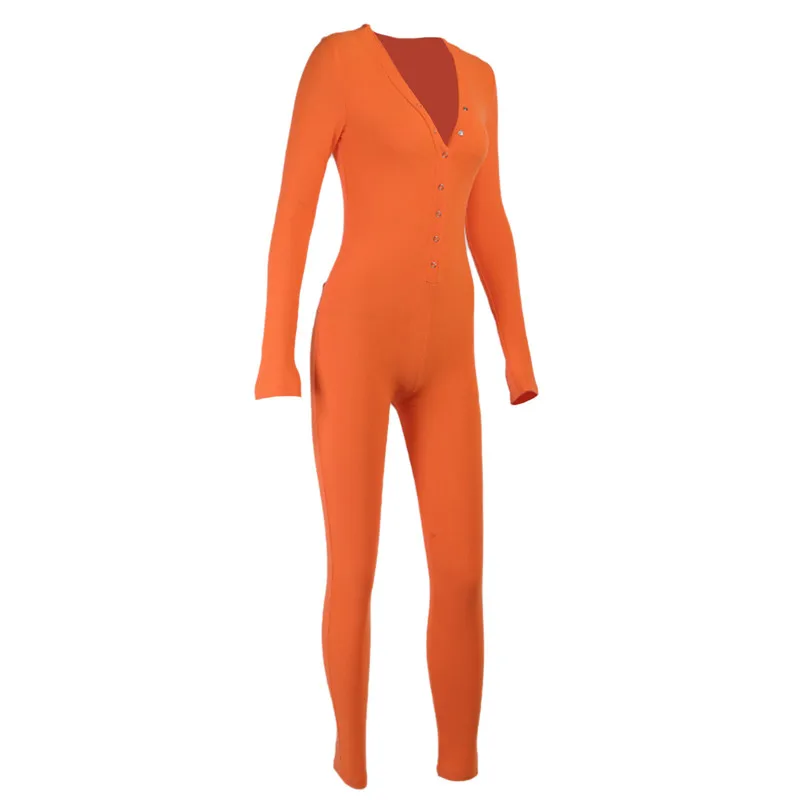 Комбинезон женский hirigin, с V-образным вырезом, на пуговицах, с длинным рукавом, Осенний
