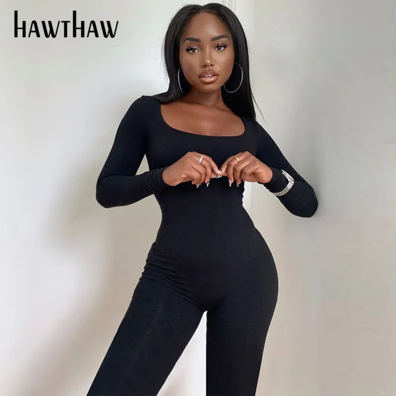 Женский Облегающий комбинезон Hawthaw, однотонный Облегающий комбинезон с длинным рукавом, Осень-зима 2020