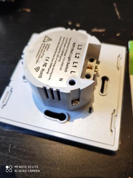 Отлично работает. Достаточно для 2 проводов. Включенный диод, чем когда лампа на черном и синем соединяется с переключателем для «подачи». Если у вас есть синяя проволока в ваших ласках, это не нужно. Синий на N, коричневый на L и черный schakeldraden на L1, L2,L3. Через приложение Smartlife непосредственно через Google Home и Nest для работы с голосом.