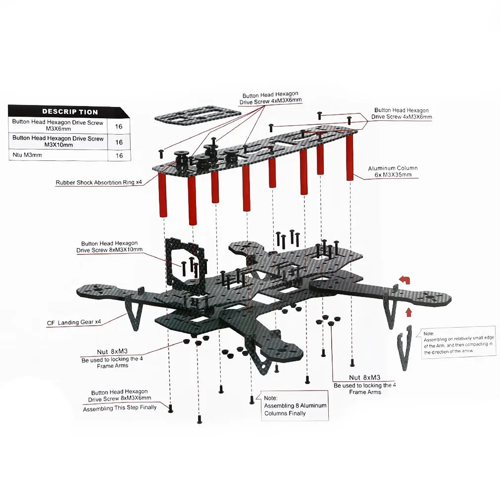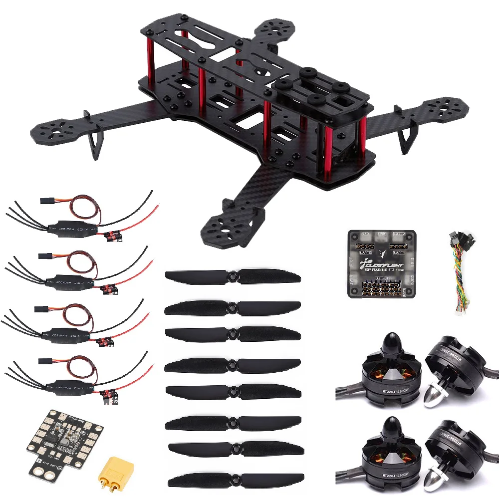 Посылка B Включает в себя: 250 стоек + двигатель MT2204 + MR.RC 12A ESC + F3 Контроллер полета ACRO + PDB распределительная плата + 5030 пропеллер