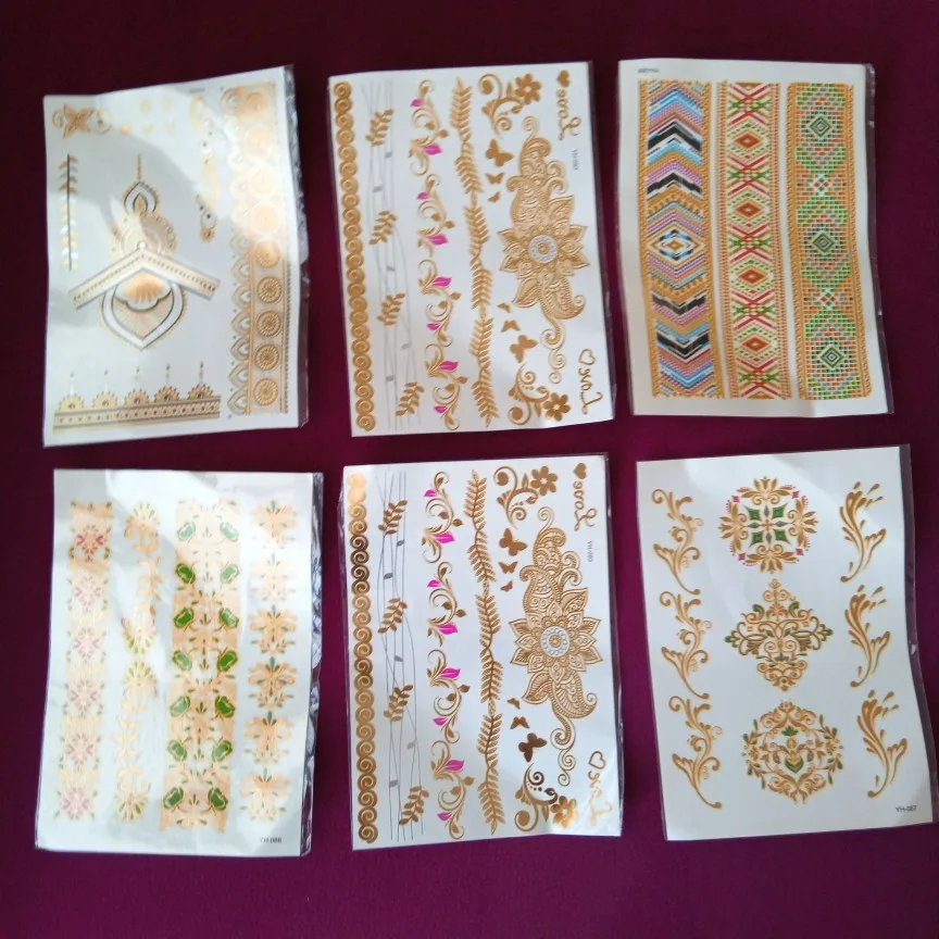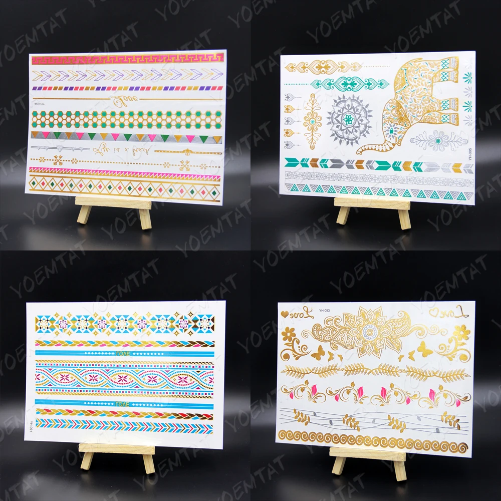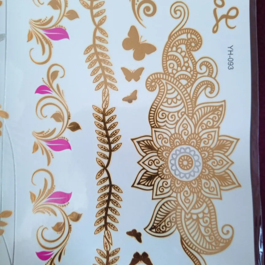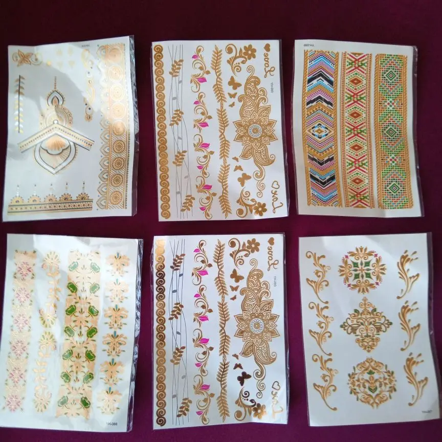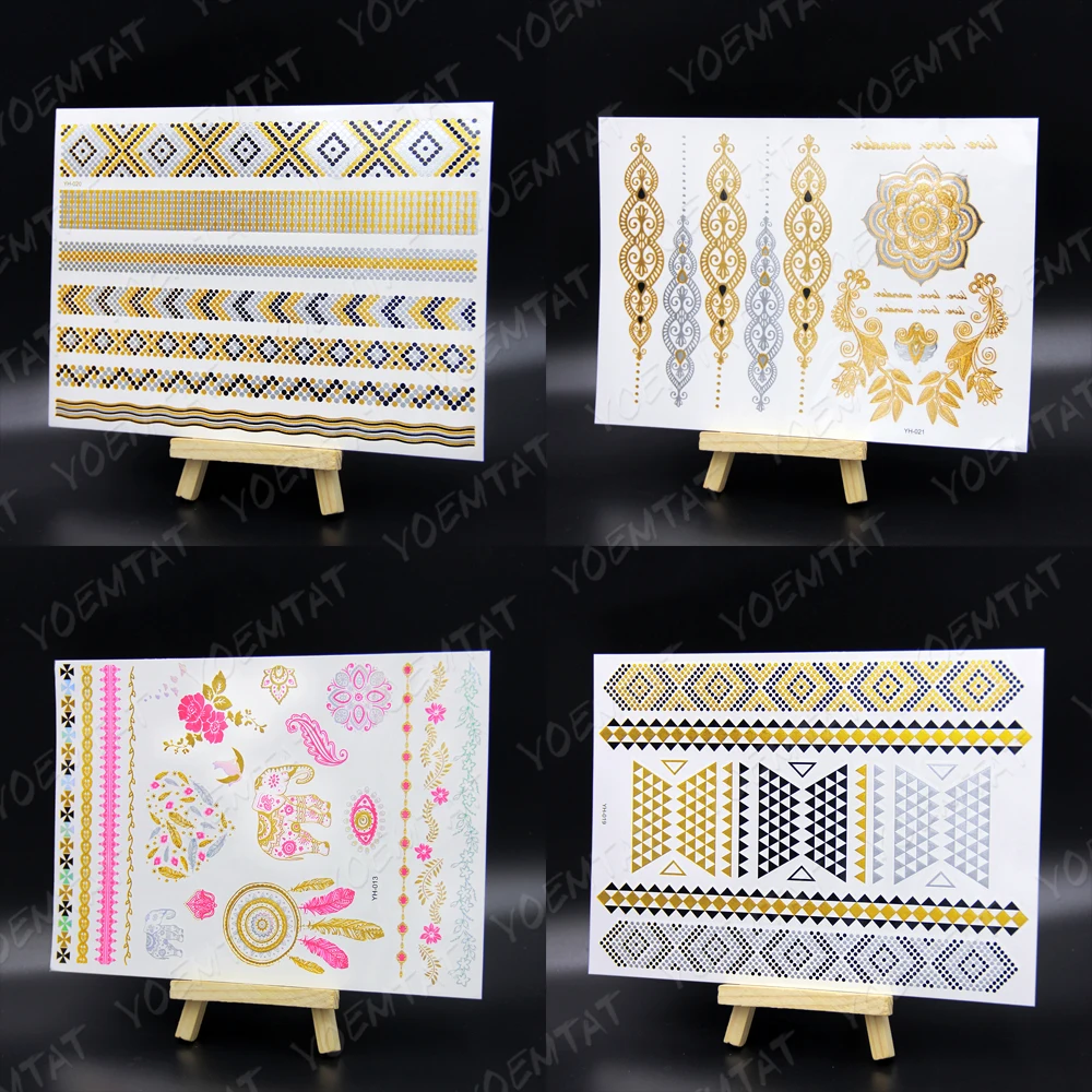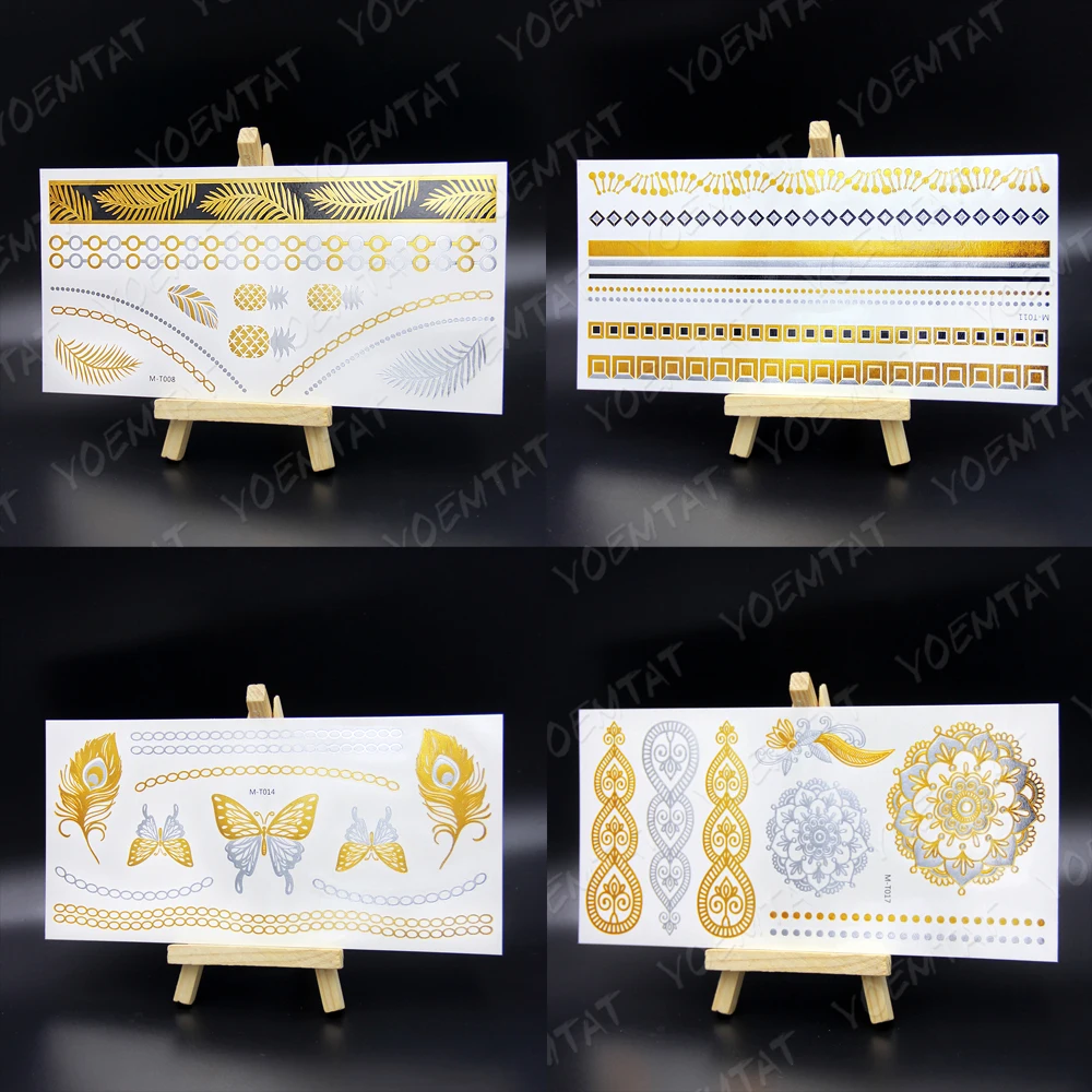 Водостойкая Временная тату-наклейка цветы Мандала хна Золото Серебро металлик флэш-тату Бохо Лотос блестящие украшения боди-арт