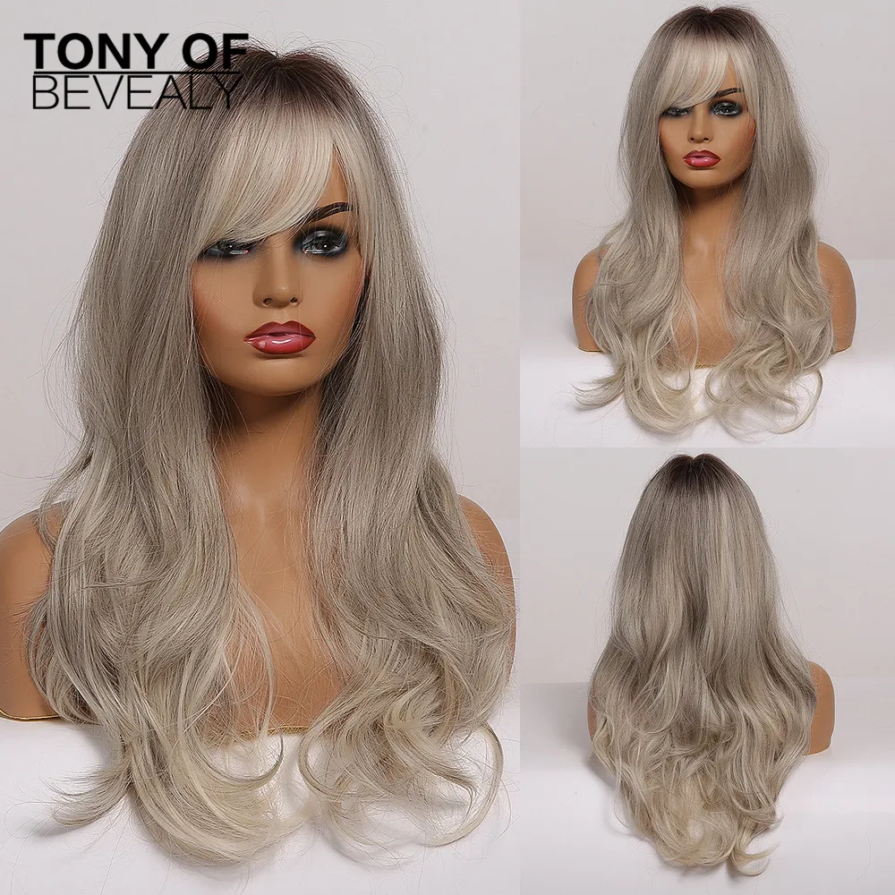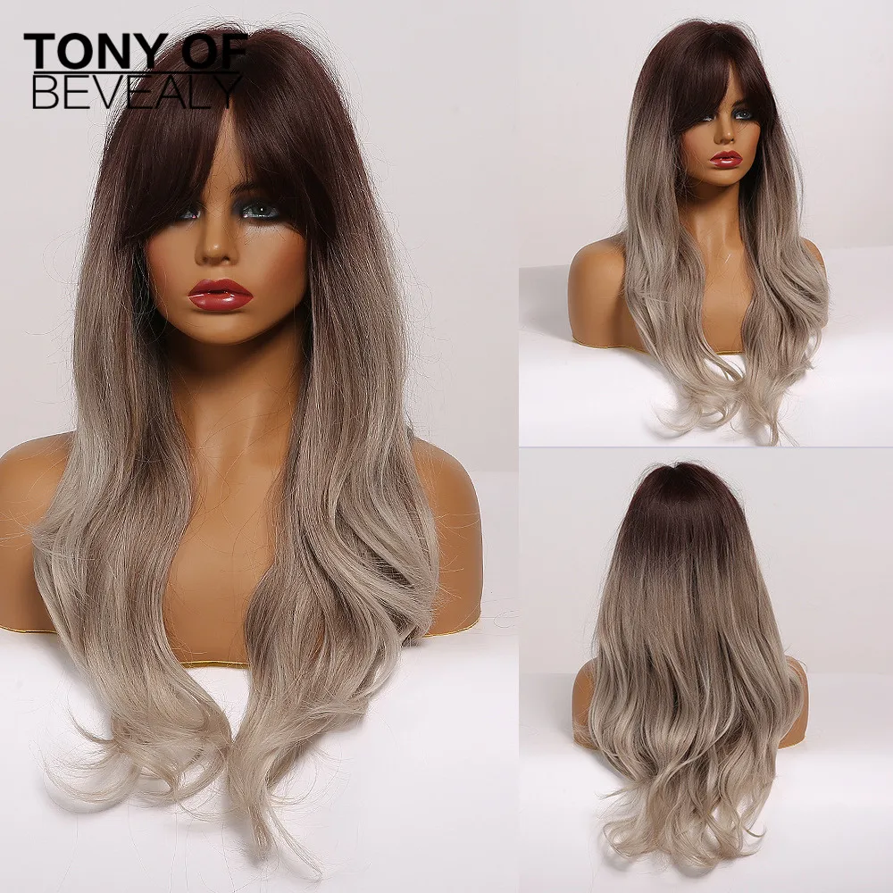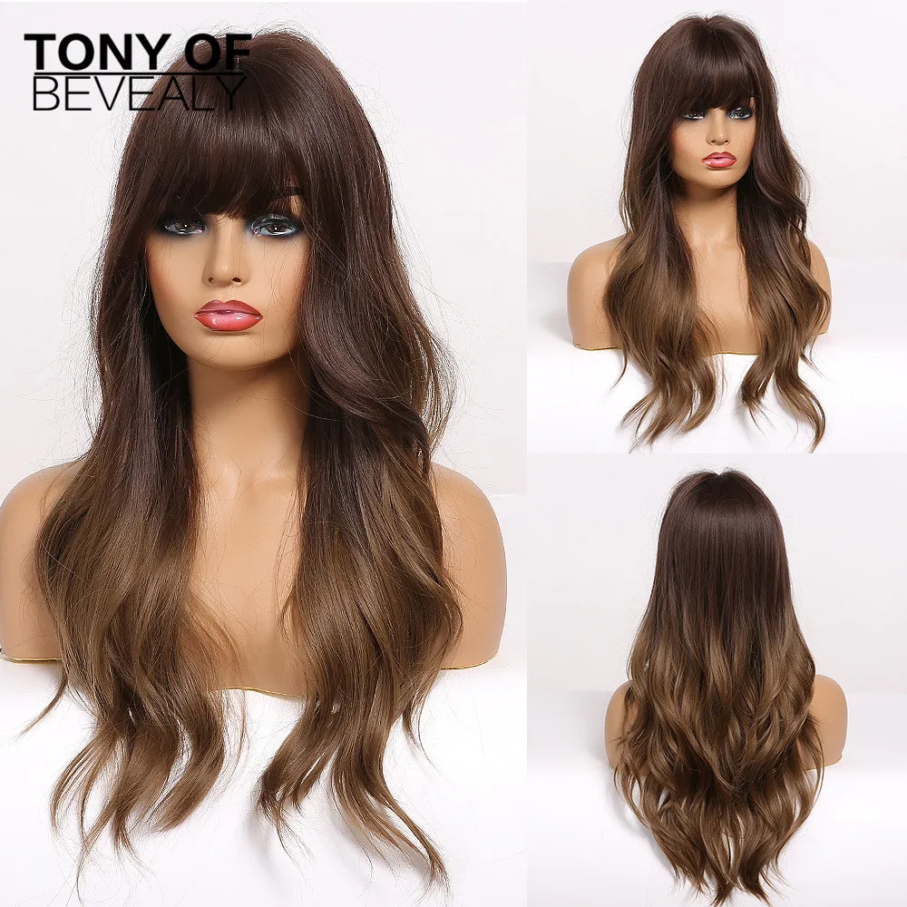 Длинные черные синтетические волосы парики с челкой для афро женщин натуральные волнистые повседневные Косплей натуральные парики термостойкие волокна парики