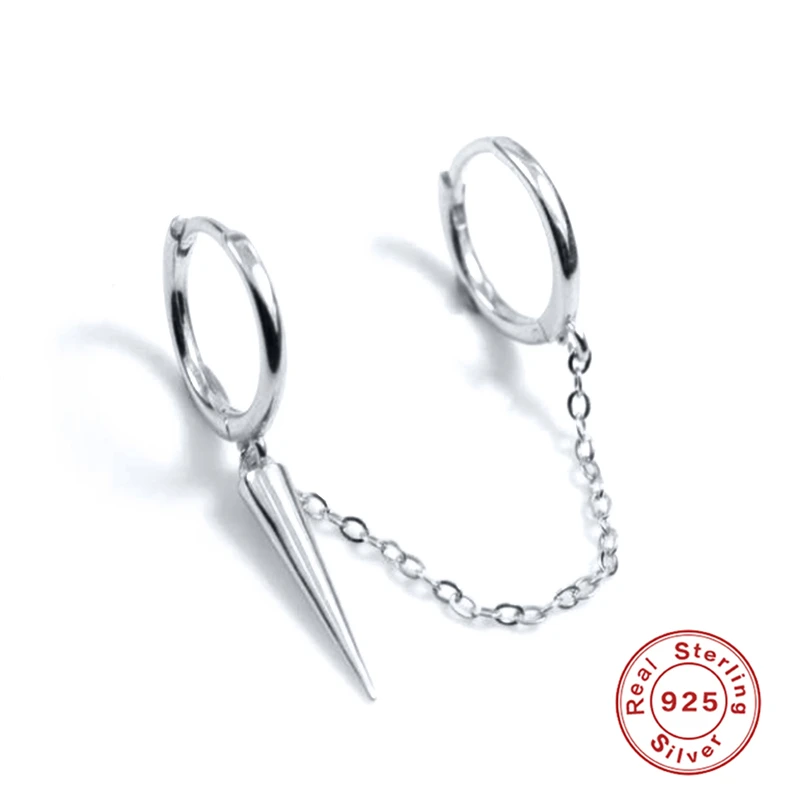 Автоклав 100% реальные 925 стерлингового серебра двойные серьги-кольца для женщин НЕТ циркон Конус Пирсинг серьга серьги ювелирные изделия Pendientes
