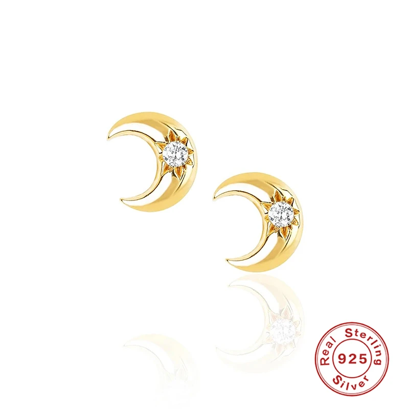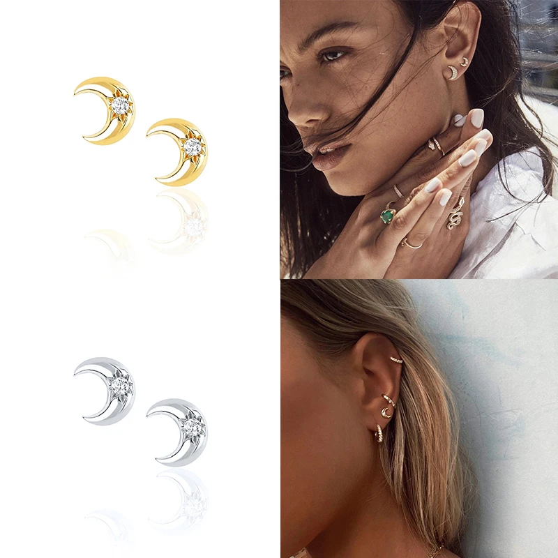 Aide реальные 925 стерлингового серебра серьги-гвоздики для женщин подарок мини Луна Форма цирконами Серьги Brincos, можно носить с Aretes