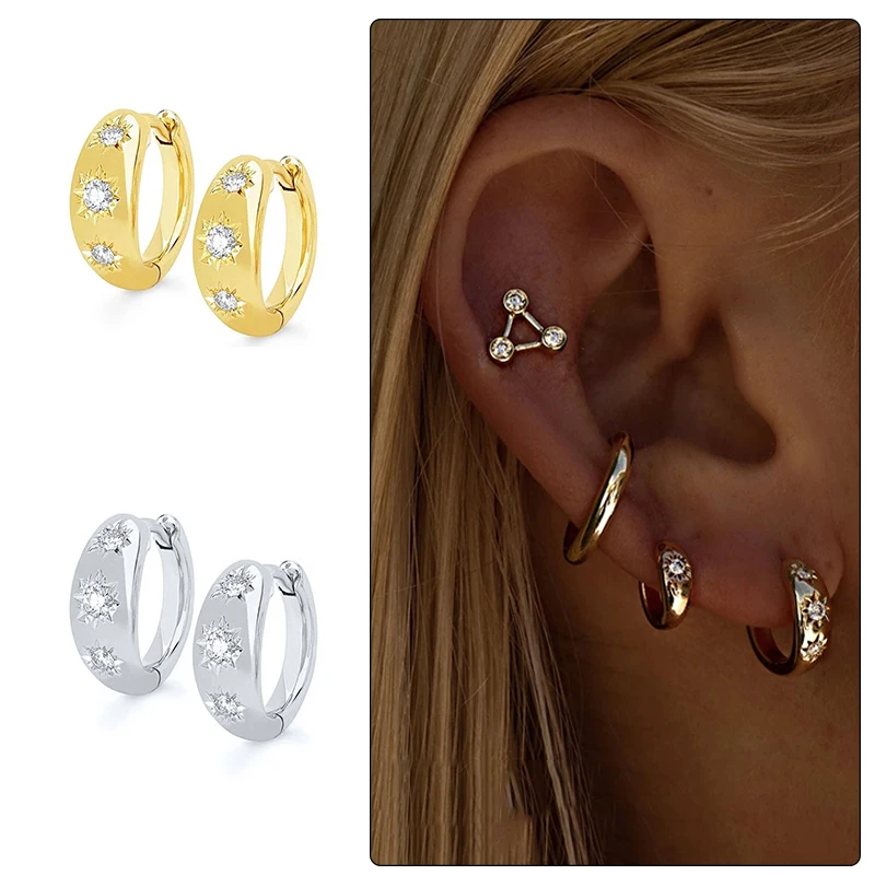 925 пробы серебро восьмиугольная циркон Звезда Серьги в виде колец, для Для женщин изысканные роскошные ювелирные изделия с цирконием, Серьги Brincos, можно носить с Aretes