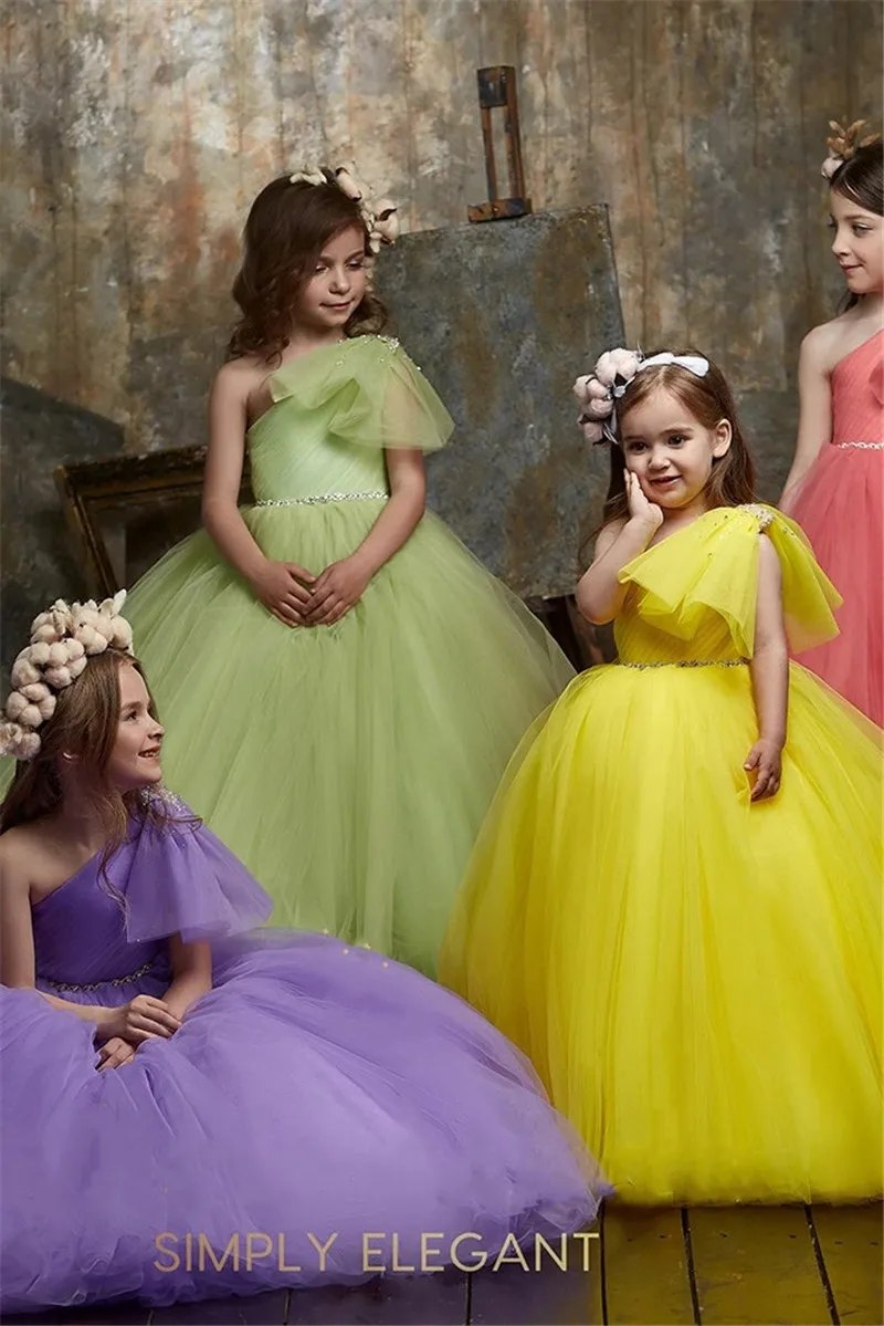 Новинка, блестящие платья на одно плечо с цветами для девочек, детское платье принцессы на день рождения, детское праздвечерние чное платье, одежда для фотосессии