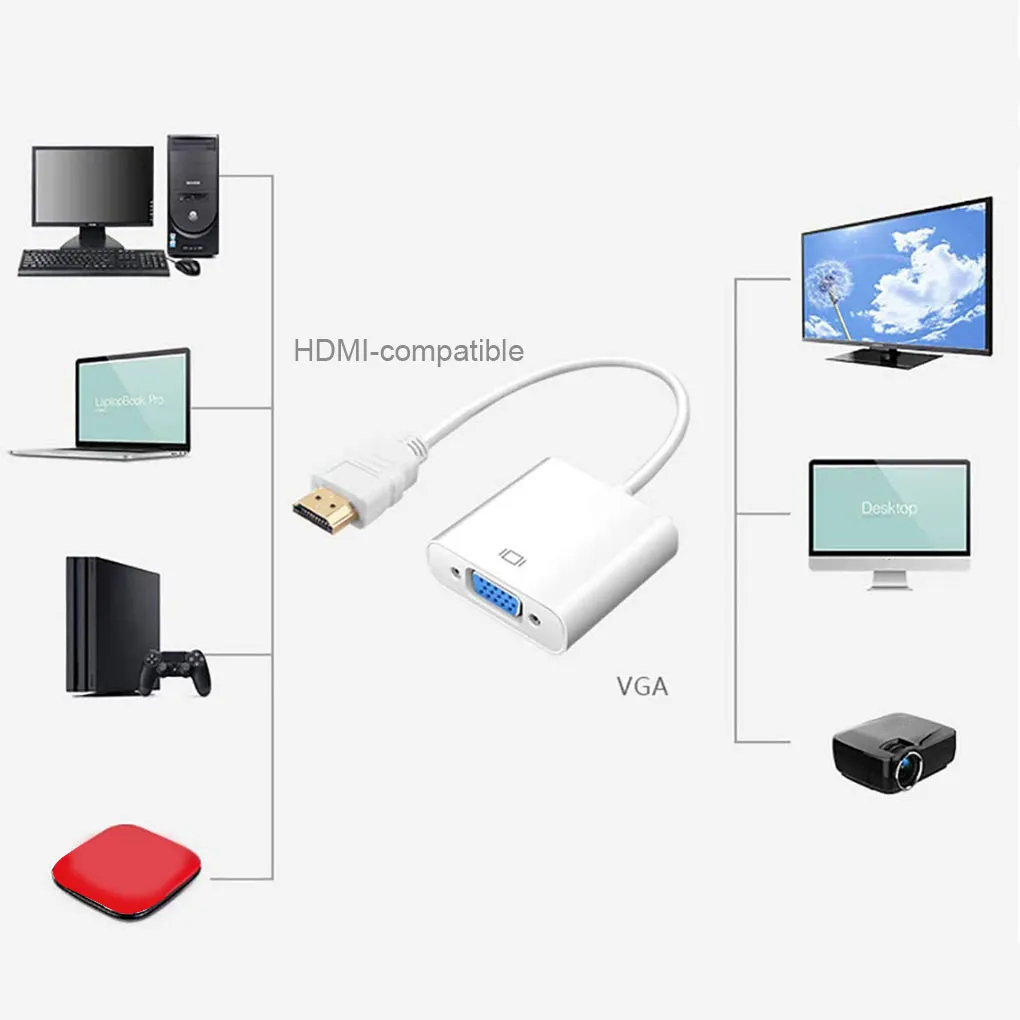 Переходник HD (штекер)VGA (разъем), Для передачи изображения 1080p, для подключения ноутбука, компьютера к телевизору