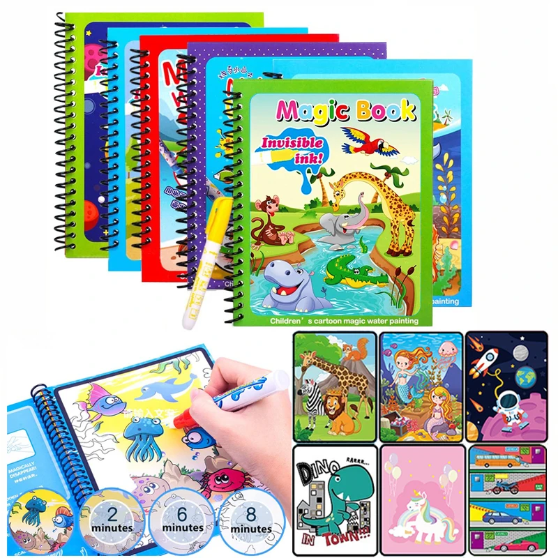 Книжка для рисования водой в виде животных, зоопарка, принцессы, цветная Русалка, мультяшная ручка, Магические рисунки, детские подарки, доска для рисования с игрушками
