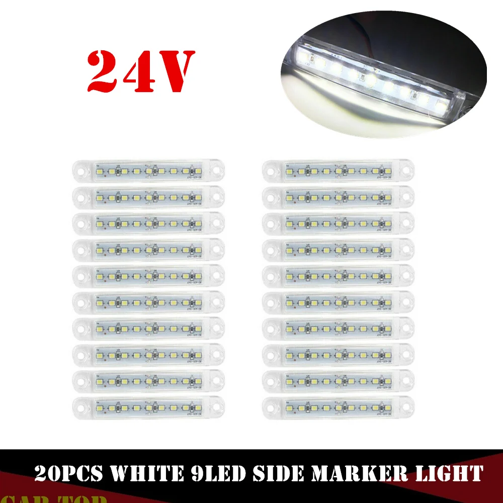 Светодиодный габаритный фонарь для грузовиков, 24 В, индикатор для грузовиков, 9 светодиодный, белый, 20 шт.