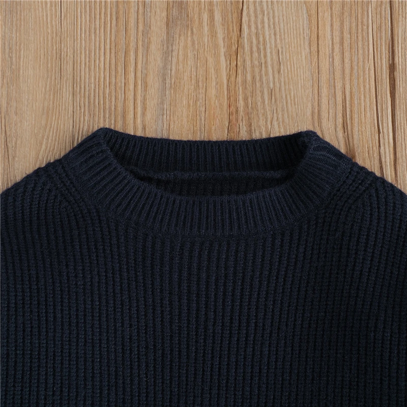 Вязаный свитер для мальчиков и девочек, Повседневный, осенне-зимний, однотонный, свободный, с круглым вырезом, с длинным рукавом, пуловер, От 0 до 6 лет