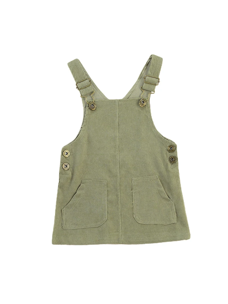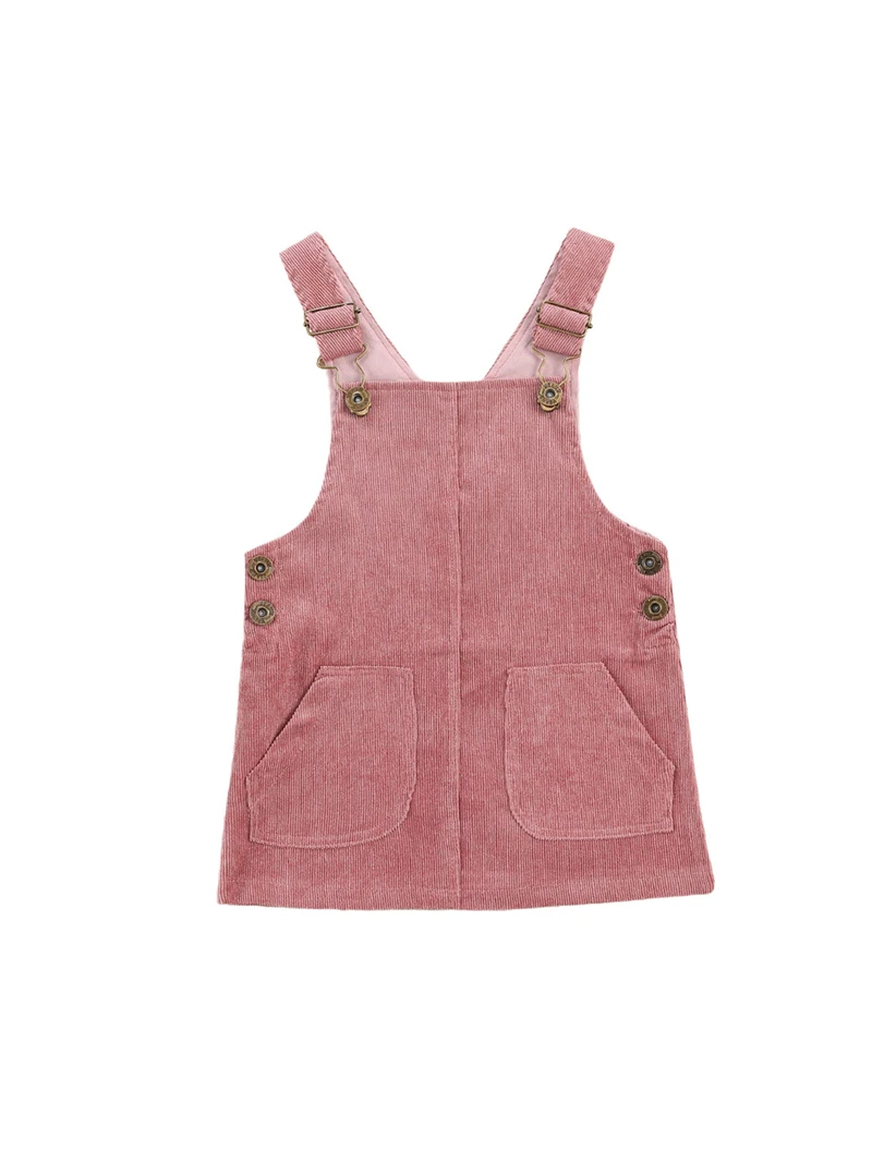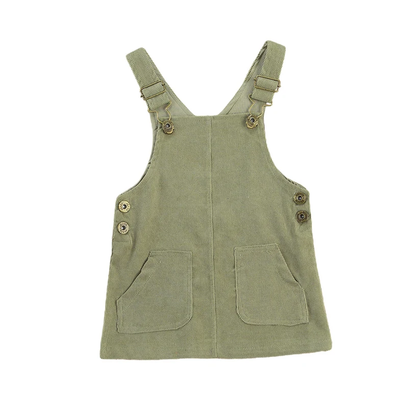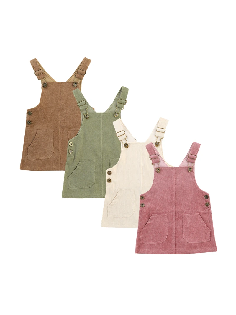 Для маленьких девочек; Плотное вельветовое Юбка на подтяжках регулируемые ремни Вельветовая короткая платья с двумя карманами в передней части