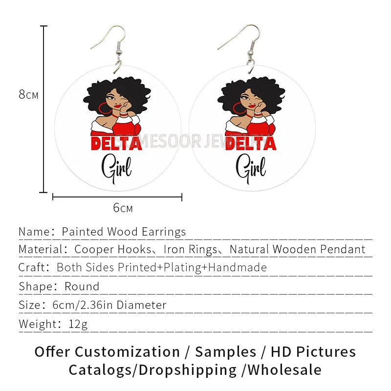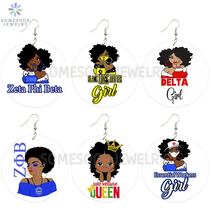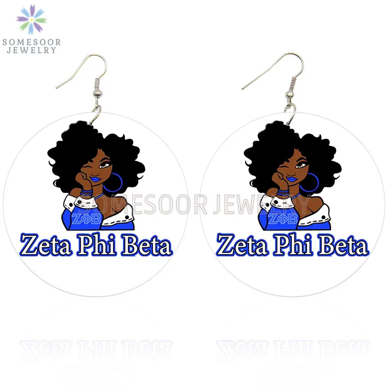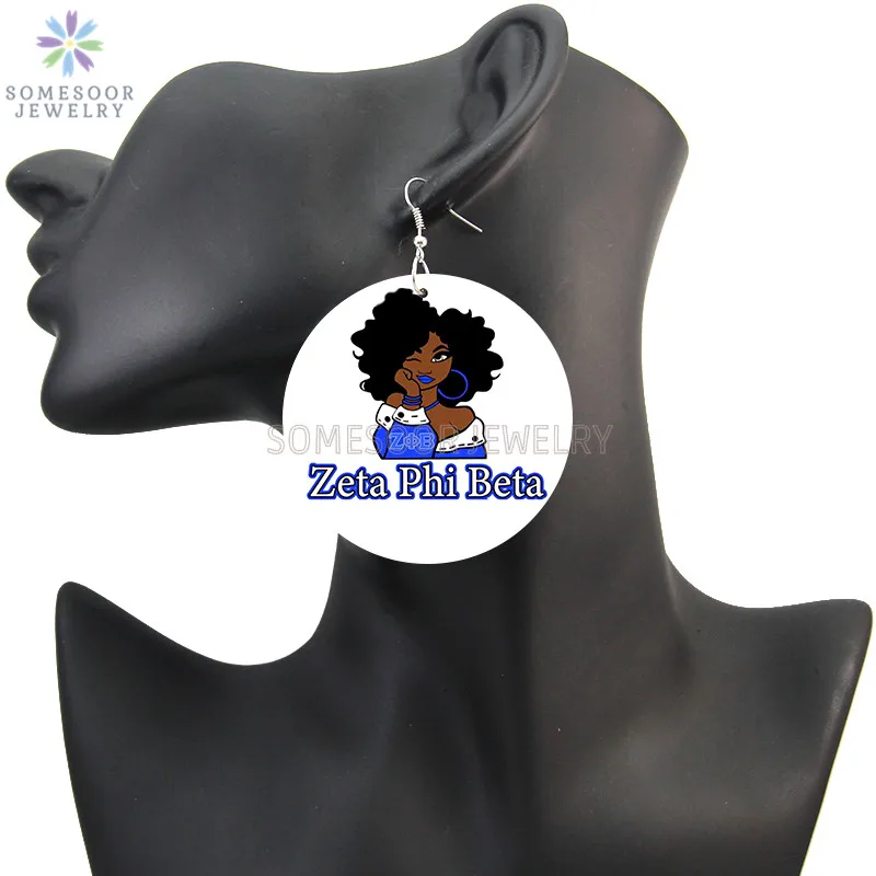 Деревянные висячие серьги SOMESOOR с двусторонним принтом Zeta Phi Beta, женское общество Дельта, девушка, меланин, королева афро, ювелирные изделия с петлями подарки
