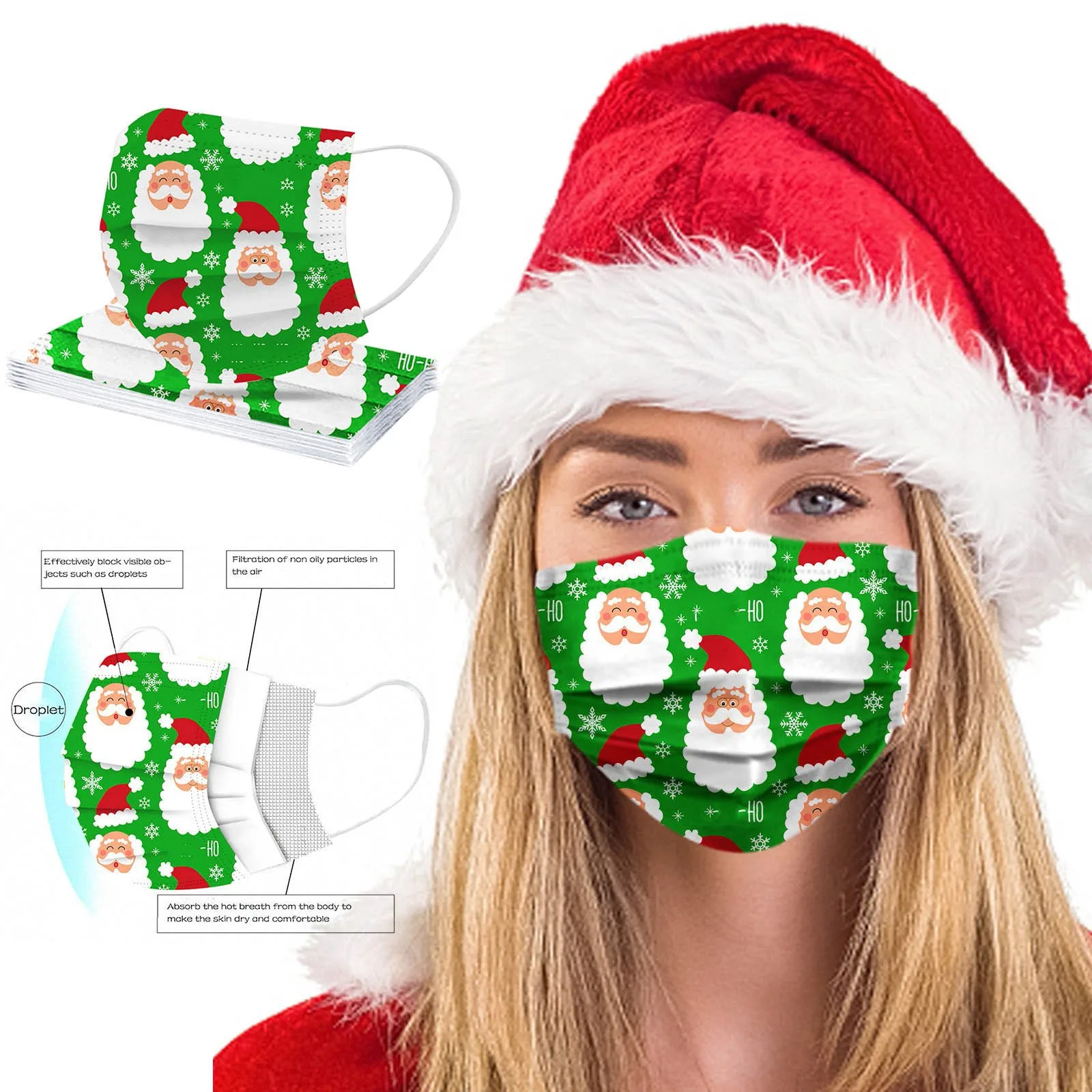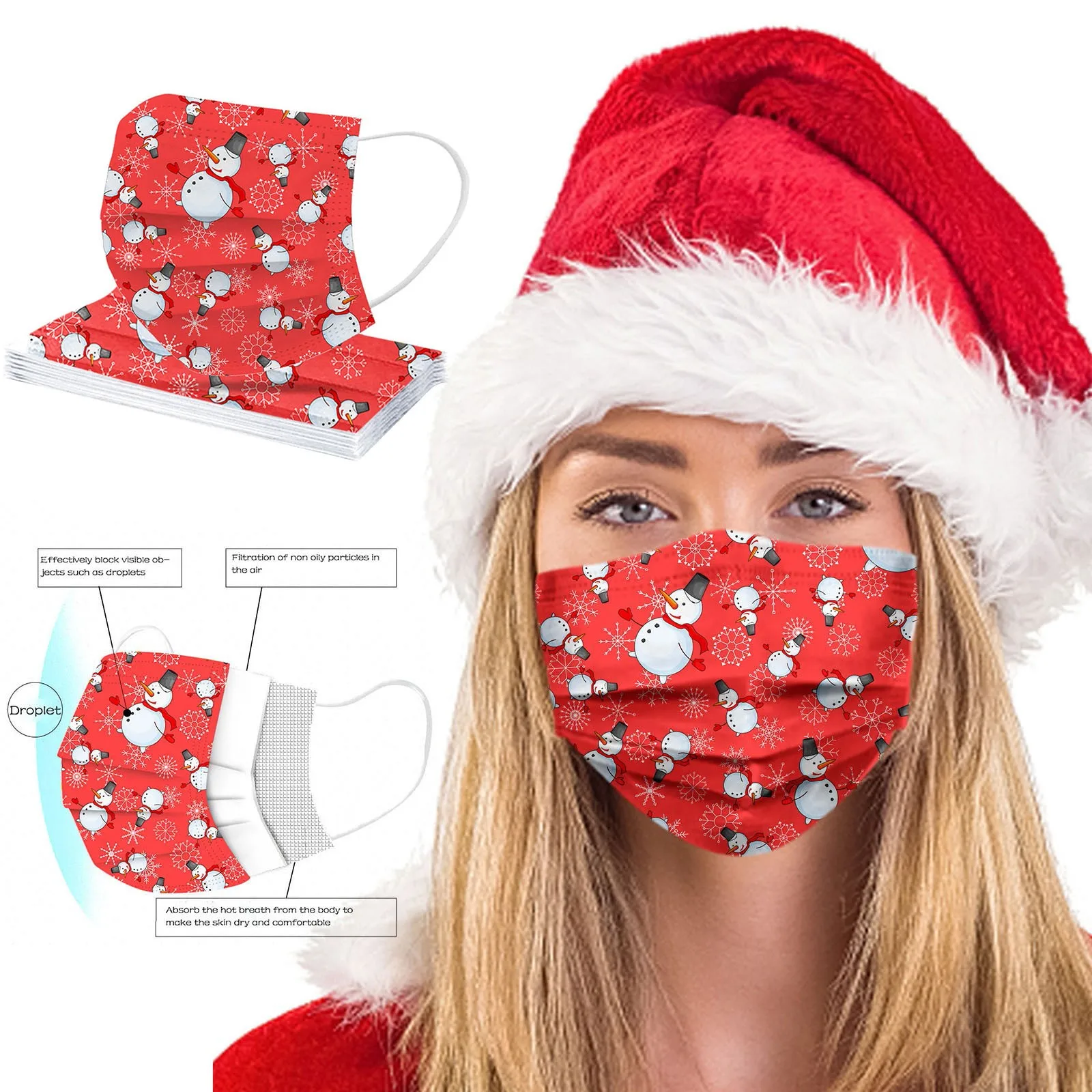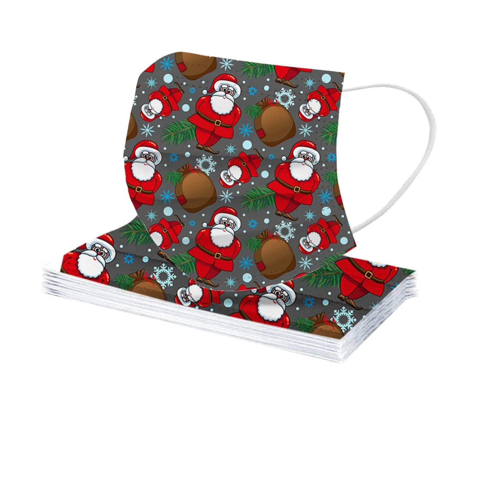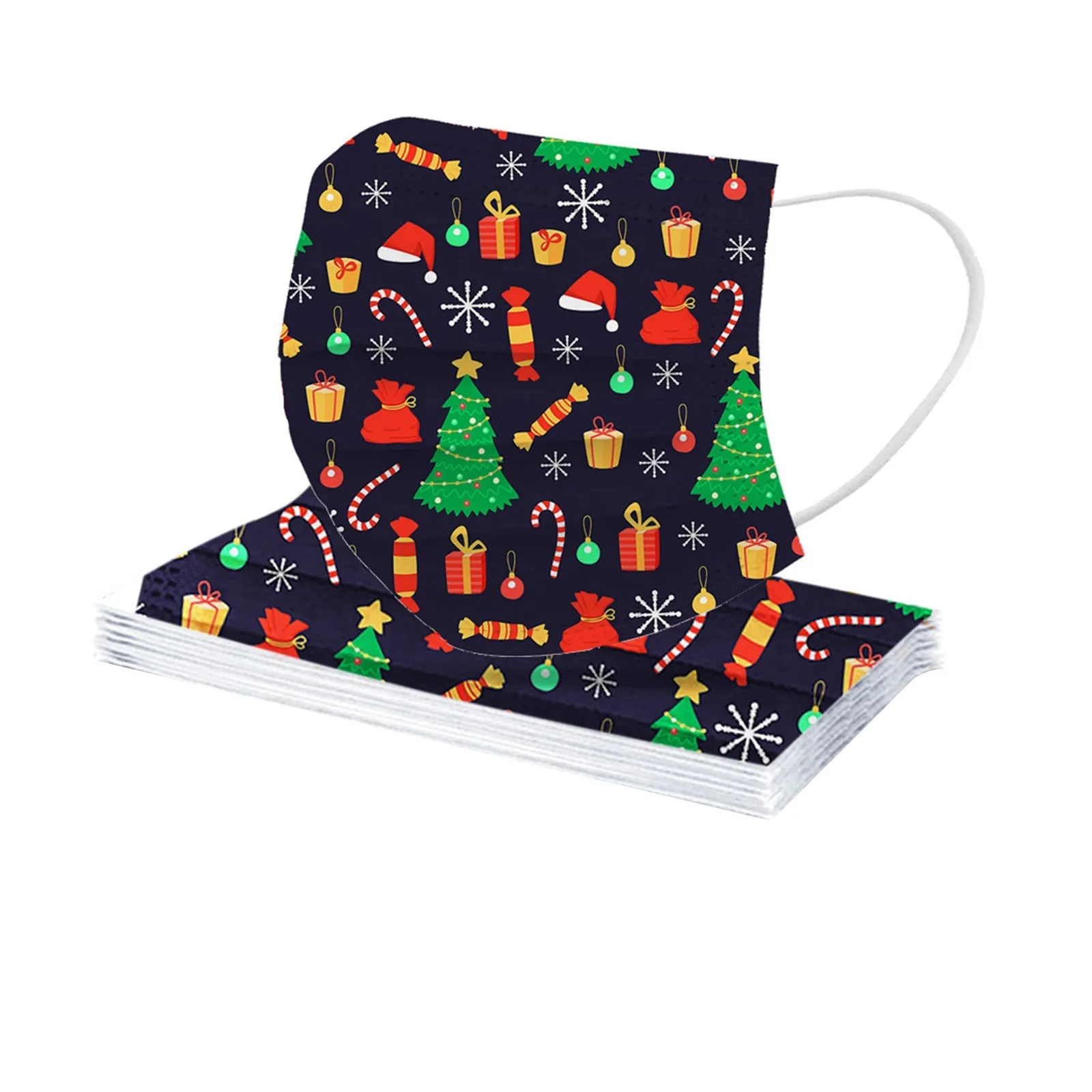 Одноразовые рождественские мягкие маски унисекс с принтом для взрослых 3-слойные маски