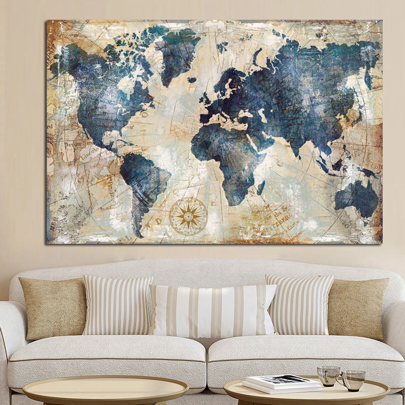 Картина с акварелью мира в винтажном стиле, холст с постером и принтом, Настенная картина для гостиной, Куадрос, Декор без рамки