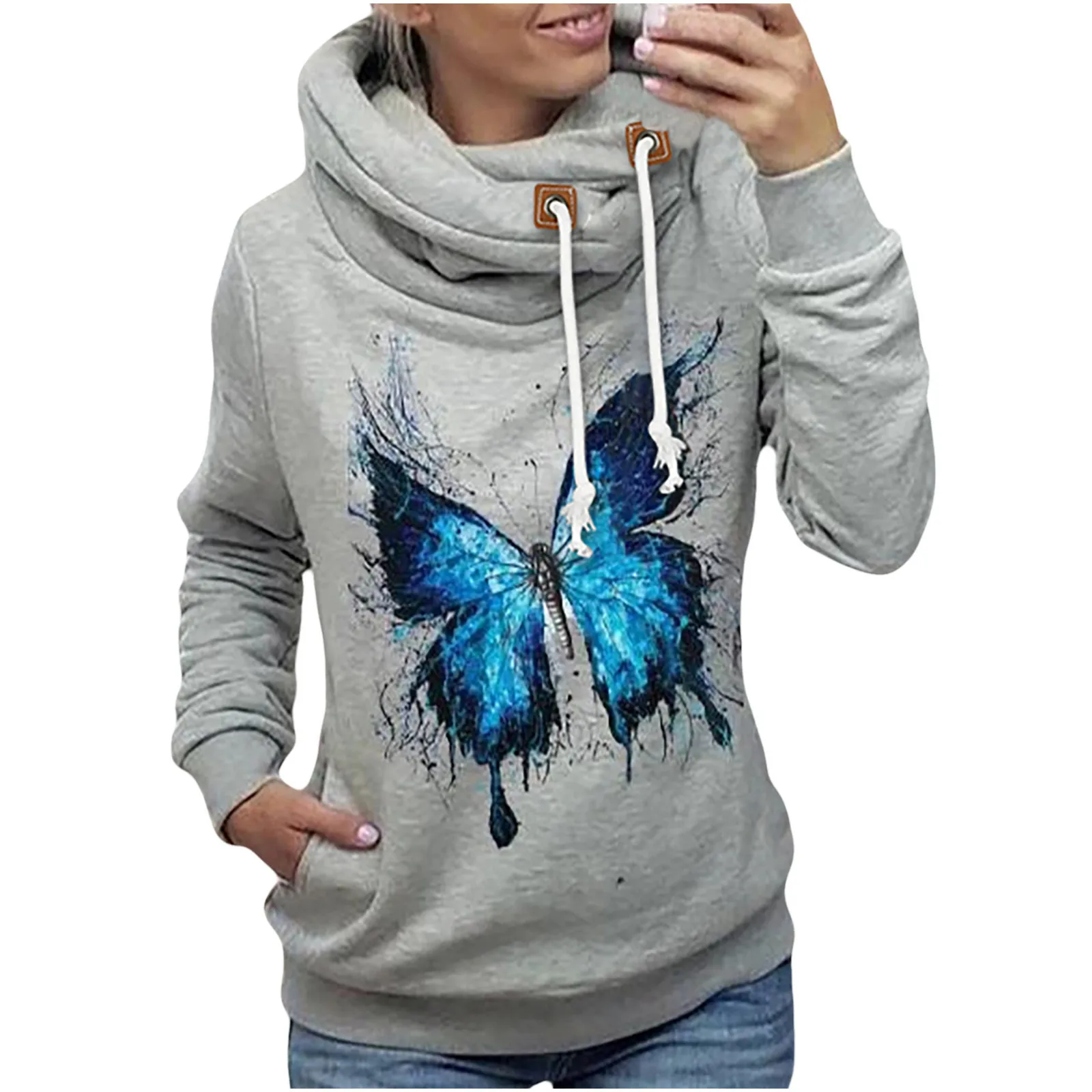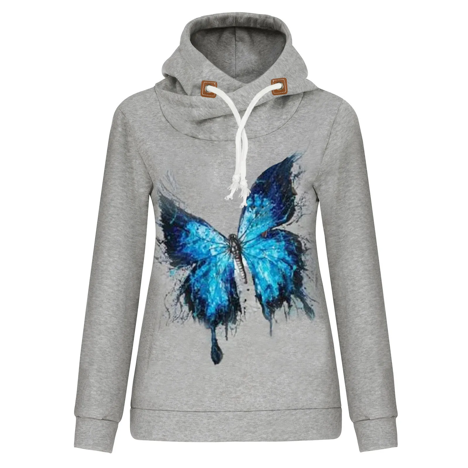 Женская толстовка с длинным рукавом, утепленная толстовка с кулиской и принтом бабочки, 2022, 2022