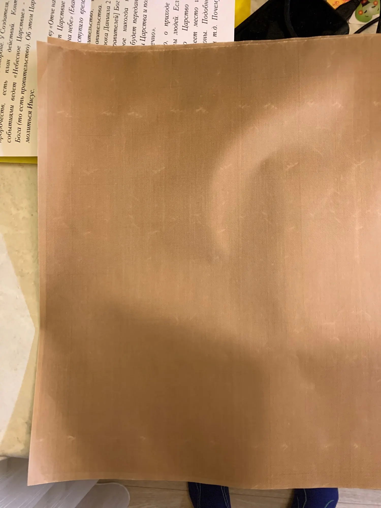 Взяла попробовать , я не знала какой он будет и ещё не знаю как в деле будет. Дополню , если не забуду . Он выглядит как переплетеное синтетическое волокно , как если бы уменьшили шаг стекловолокна . Но жесткое . Размер заказала большой , но наверное разрежу . Я хлеб выпекаю , поэтому всю поверхность нет необходимости покрывать .