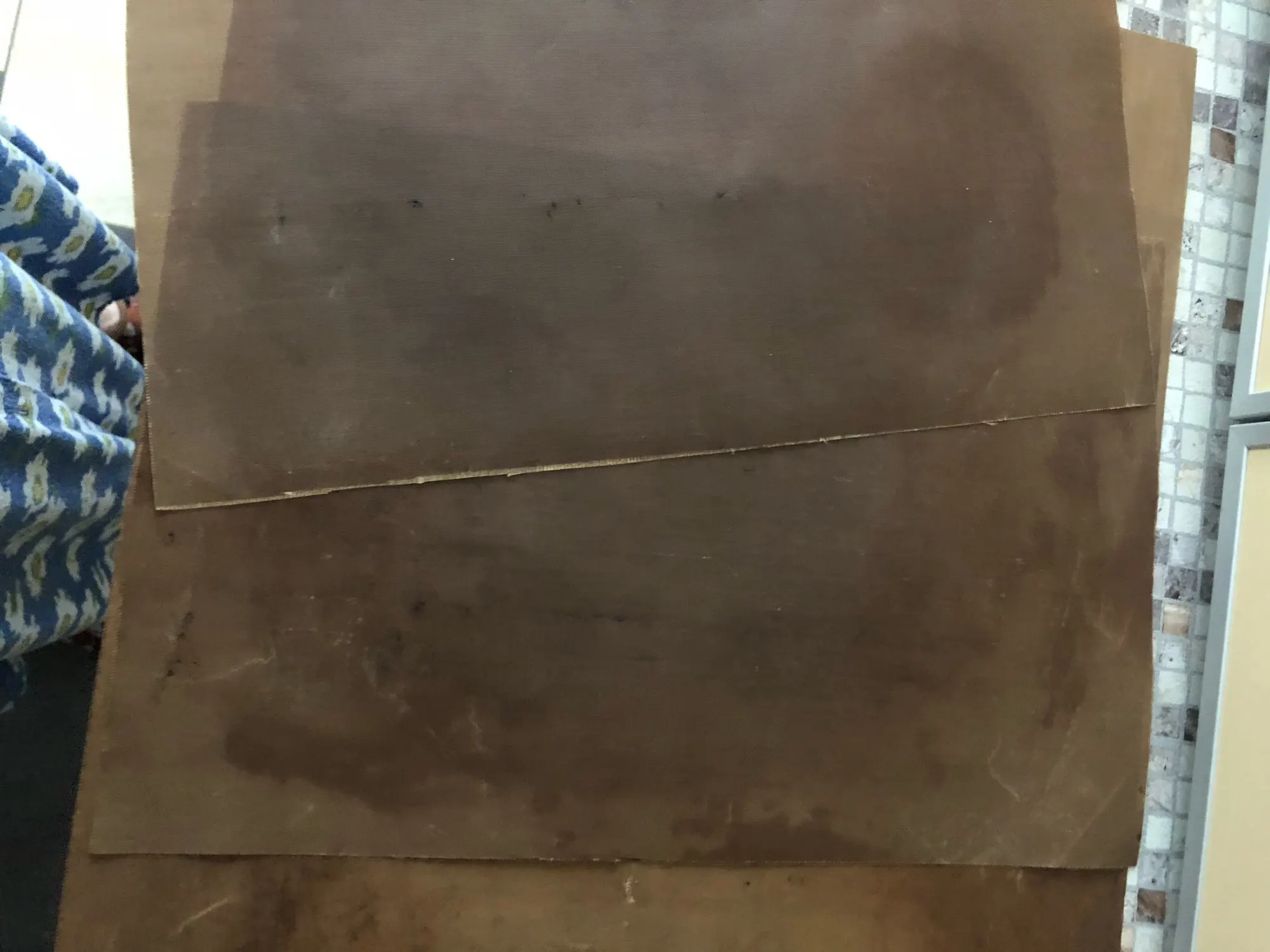 Отправляют в согнутом виде, из-за этого коврики рвутся. Для примера отправляю фото, как результат такой отправки. Один коврик порвался, на другом уже дыры, посмотрим на сколько хватит. Пожелание: шлите в рулоне, пожалуйста.