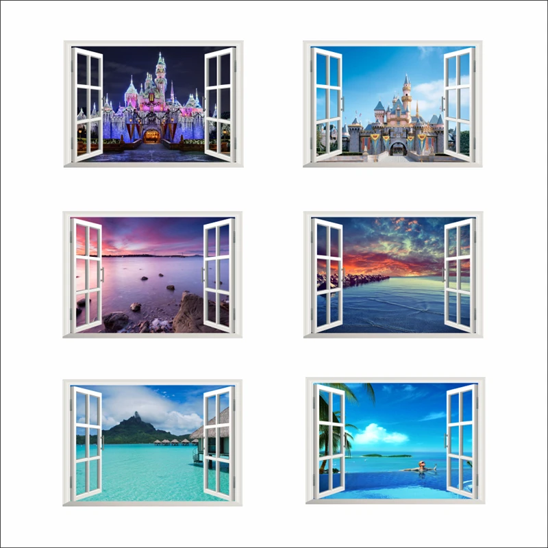 Настенные 3D наклейки на окна для офиса, гостиной, спальни, украшение для дома, пейзаж леса, роспись, художественная наклейка