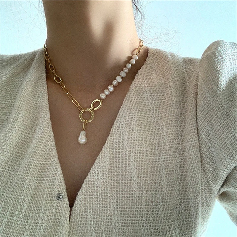 2021 нерегулярные Подвеска из натурального пресноводного жемчуга, ожерелье для Для женщин массивная цепочка круги барокко Ожерелья с жемчужинами нарядная