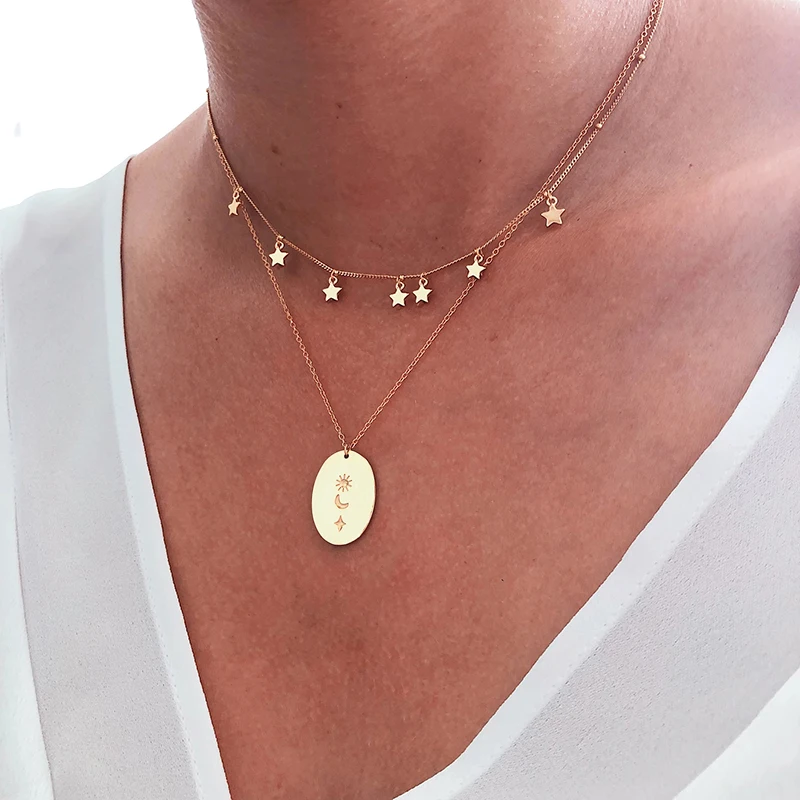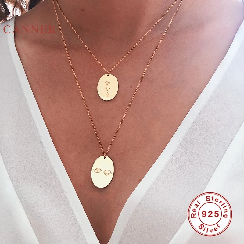 CANNER Настоящее серебро 925 пробы ожерелье солнце звезды луна ожерелье для женщин 2020 Ювелирные Изделия Бриллиантовая цепочка 18K ожерелье воротник