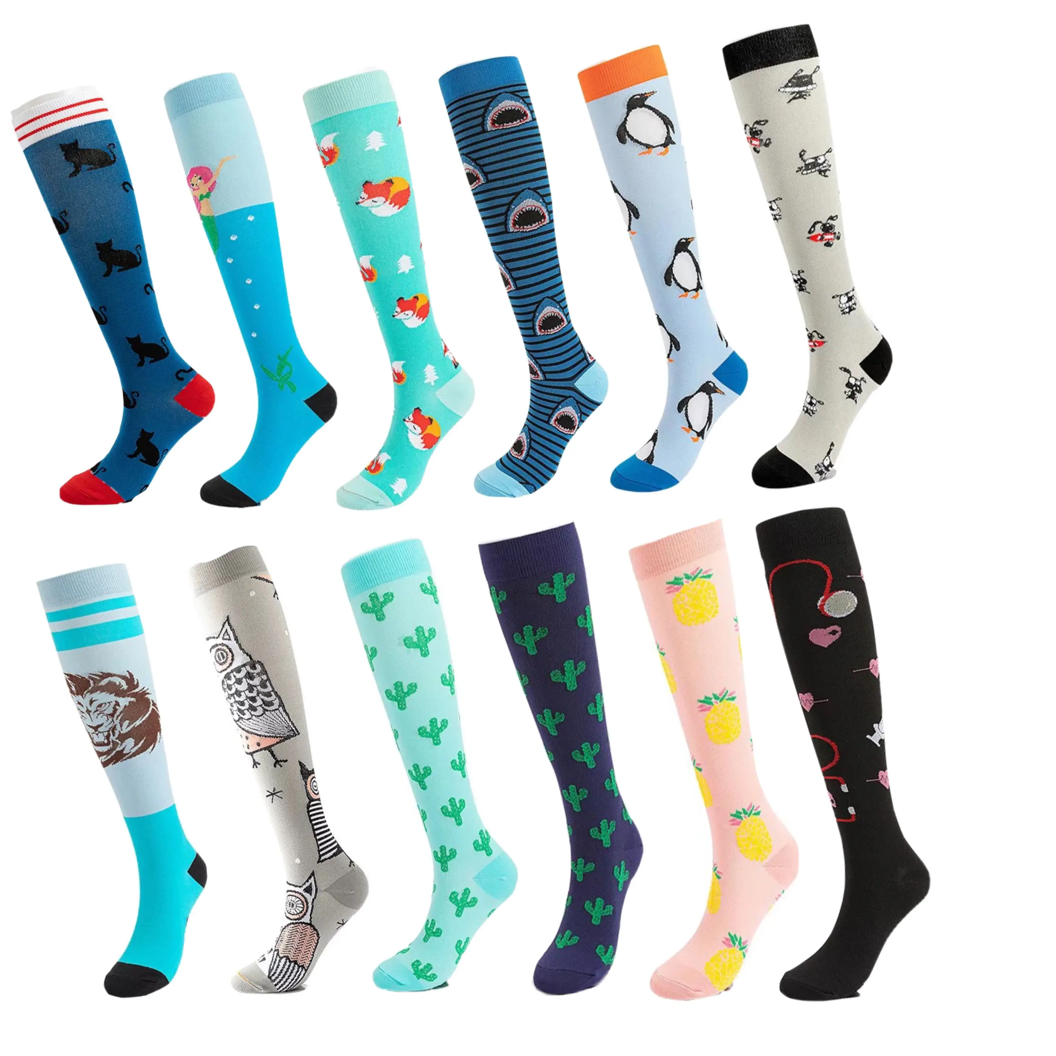 52 стиля, новые Компрессионные носки для варикоза, женские медсестры, забавные носки с принтом животных, унисекс, уличные носки для бега и велоспорта